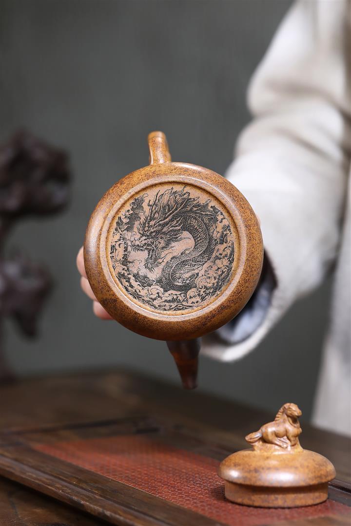 400cc原礦玄鐵石黃遊龍仿古泡茶壺POT9487