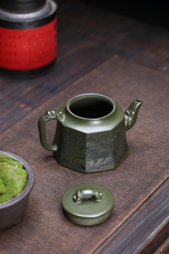 350cc原礦民國綠泥八方龍權泡茶壺POT9485