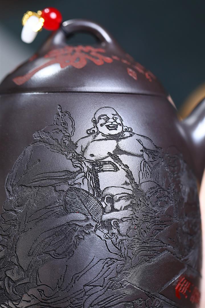 270cc原礦大紅袍滿刻景舟石瓢泡茶壺POT9490