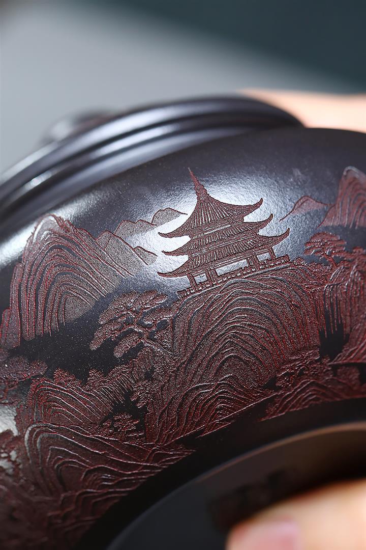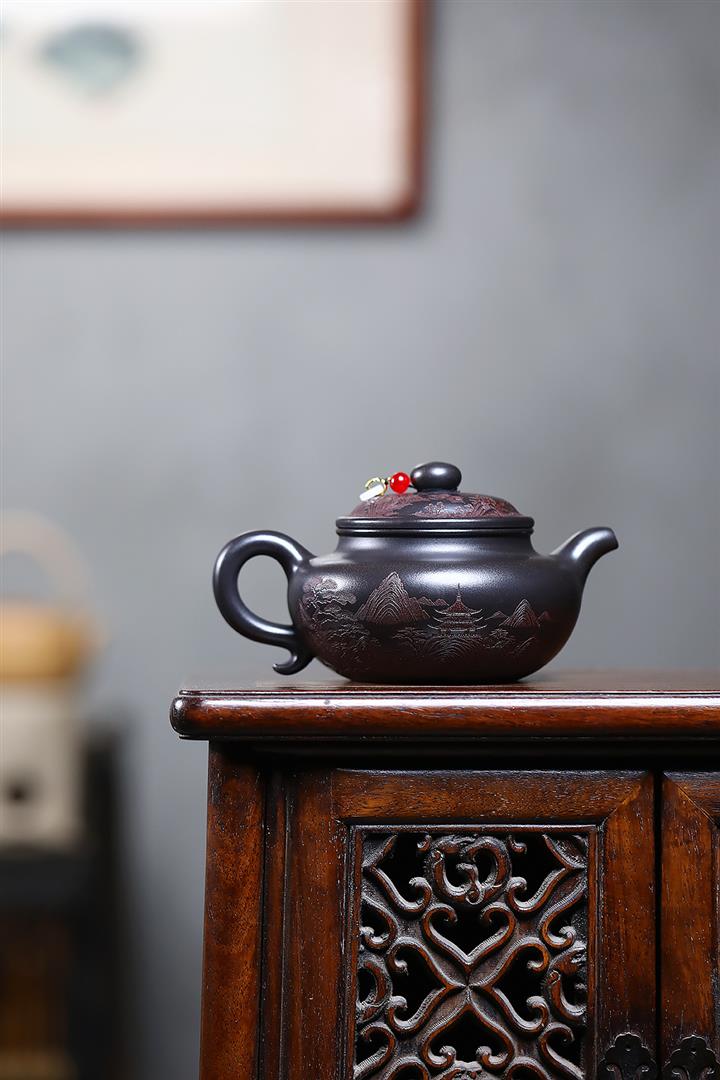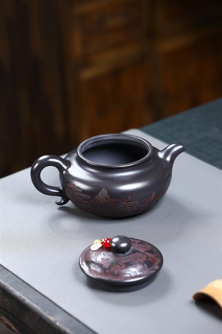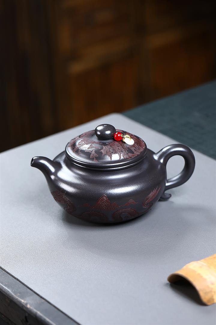 270cc原礦大紅袍滿刻景舟石瓢泡茶壺POT9490