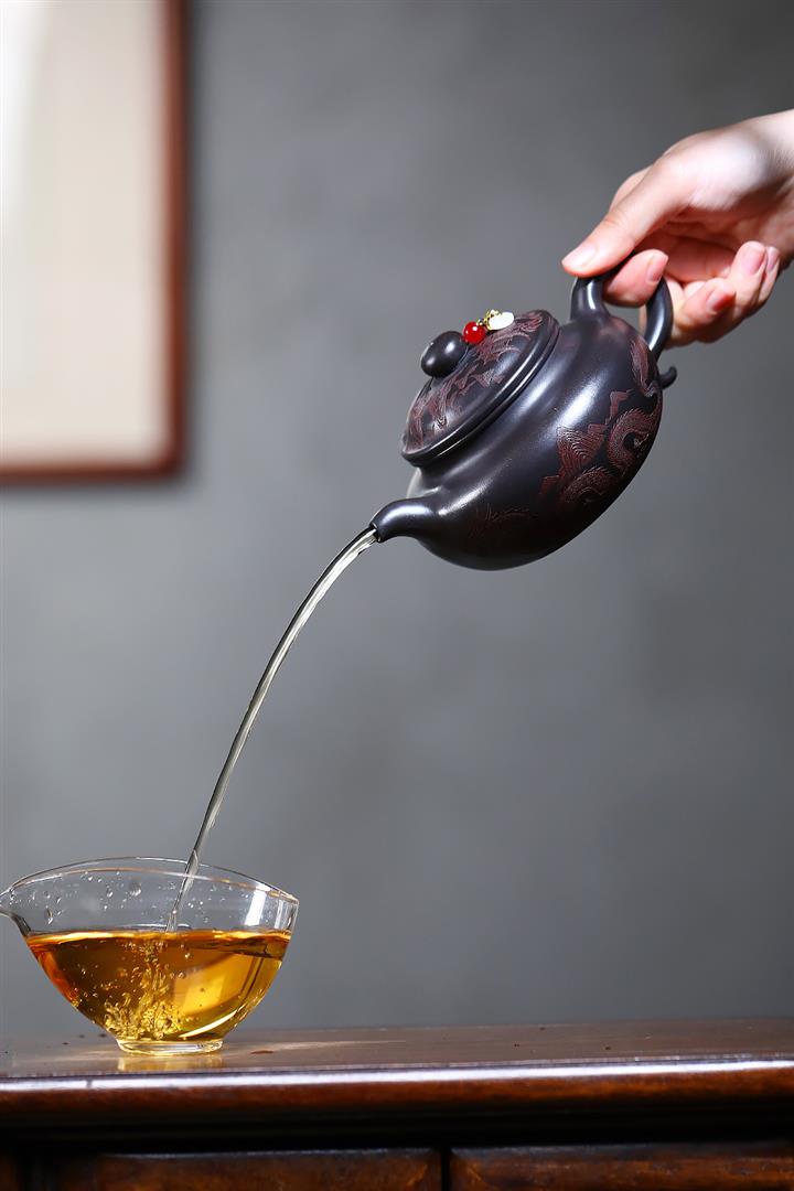 【作品介紹】此款壺形線條流暢,壺把,壺嘴,壺身壹氣呵成栩栩如生,是收藏把玩的好壺,泥料色澤古樸典雅,日久使用,漸露鋒芒,養成變化快,溫潤莊重,用其泡茶,使用的年代久,壺身就溫潤,泡出來的茶湯也就醇郁芳馨。