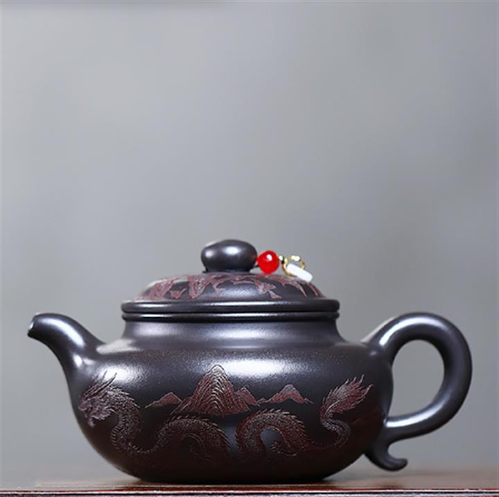400cc原礦玄鐵石黃遊龍仿古泡茶壺POT9487