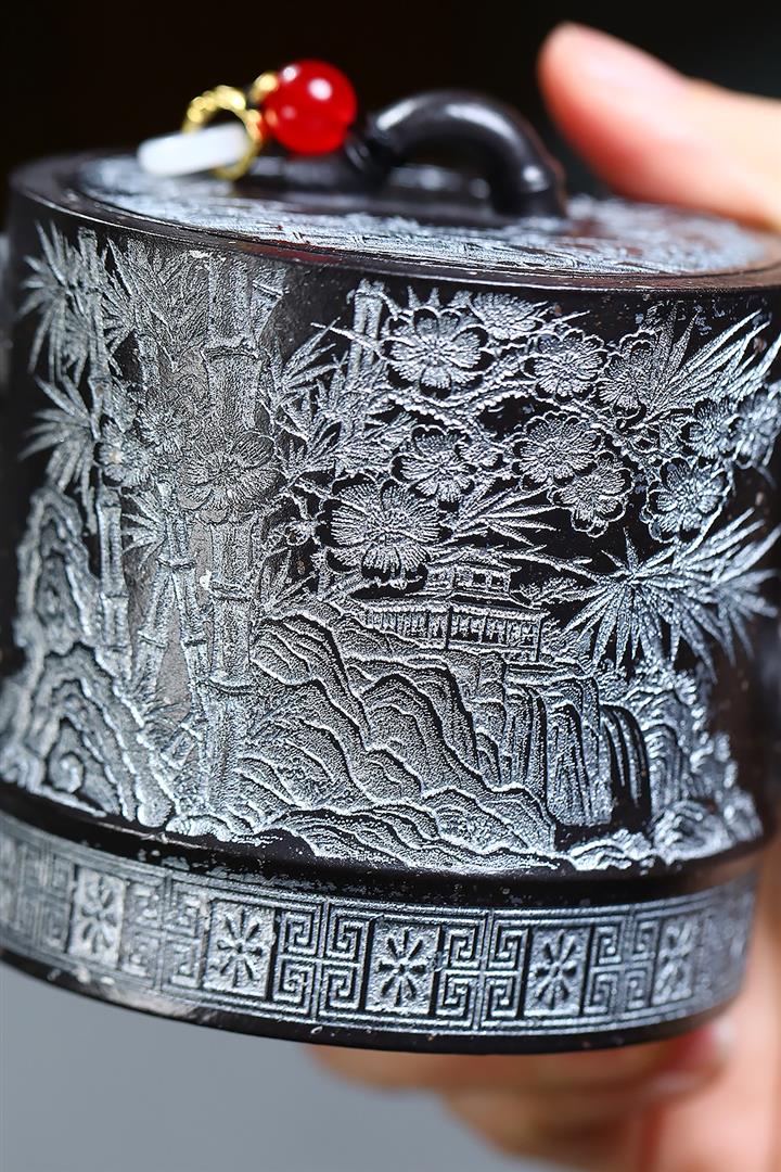 【泥料特點】砂土氣重,似淳實農民,日久使用,漸露鋒芒,養成變化,溫潤莊重。紫砂是壹種雙重氣孔結構的多孔性材質,氣孔微細,密度高。用紫砂壺沏茶,不失原味,且香不渙散,得茶之真香真味。紫砂使用越久,壺身色澤越發光亮照人,氣韻溫雅。紫砂壺長久使用器身會因撫摸擦拭,變得越發溫潤光澤。