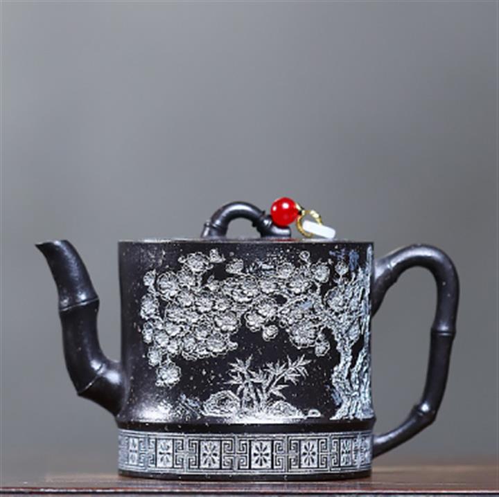 250cc原礦雪花泥梅竹雙清泡茶壺POT9488