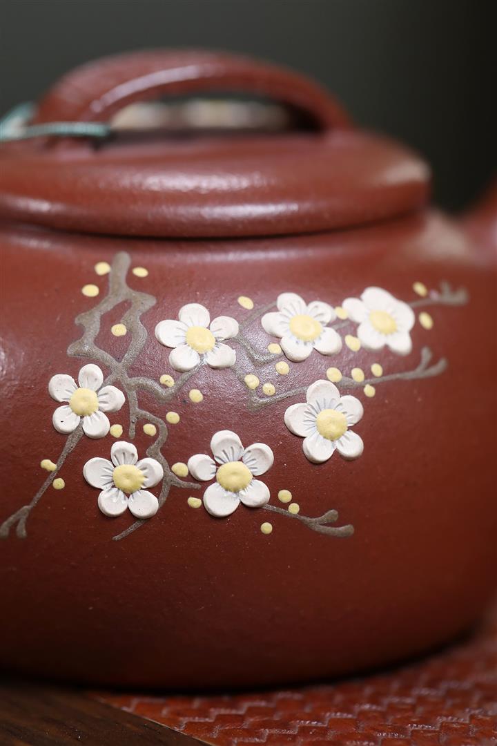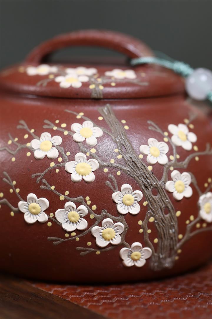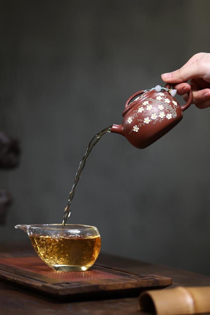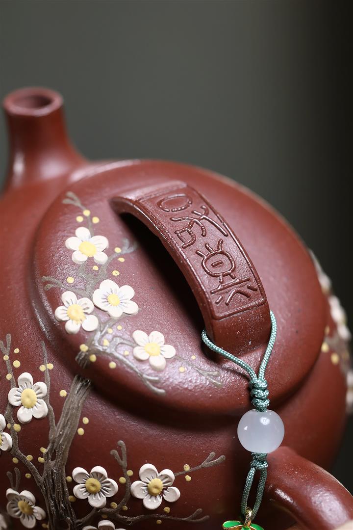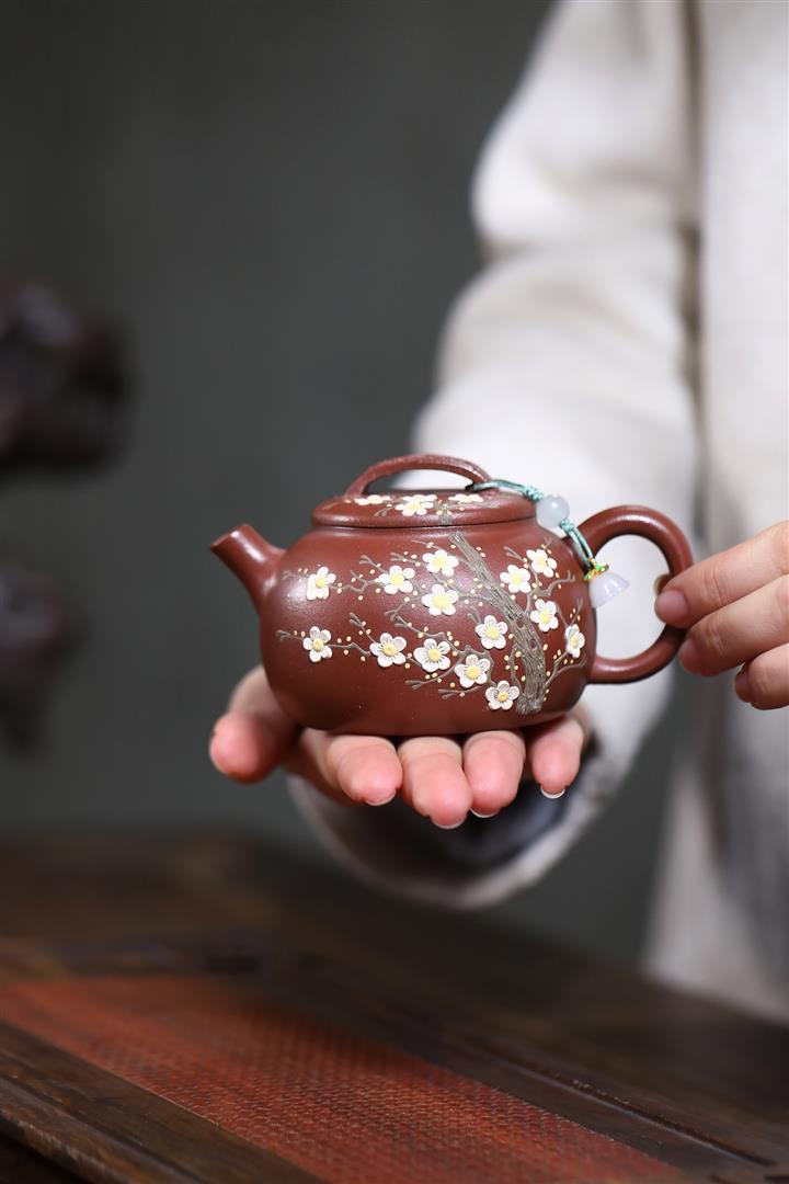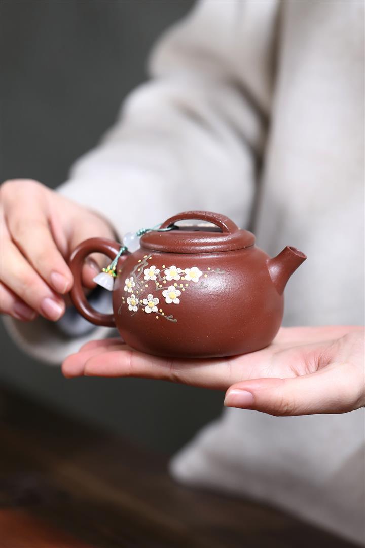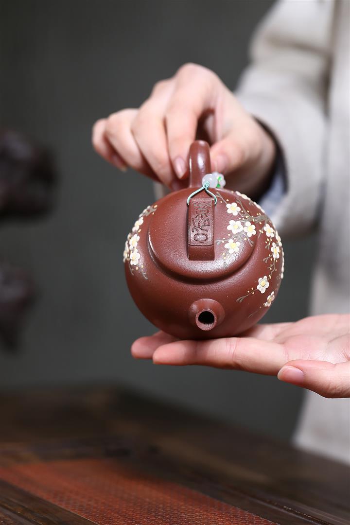 【泥料特點】砂土氣重,似淳實農民,日久使用,漸露鋒芒,養成變化,溫潤莊重。紫砂是壹種雙重氣孔結構的多孔性材質,氣孔微細,密度高。用紫砂壺沏茶,不失原味,且香不渙散,得茶之真香真味。紫砂使用越久,壺身色澤越發光亮照人,氣韻溫雅。紫砂壺長久使用器身會因撫摸擦拭,變得越發溫潤光澤。