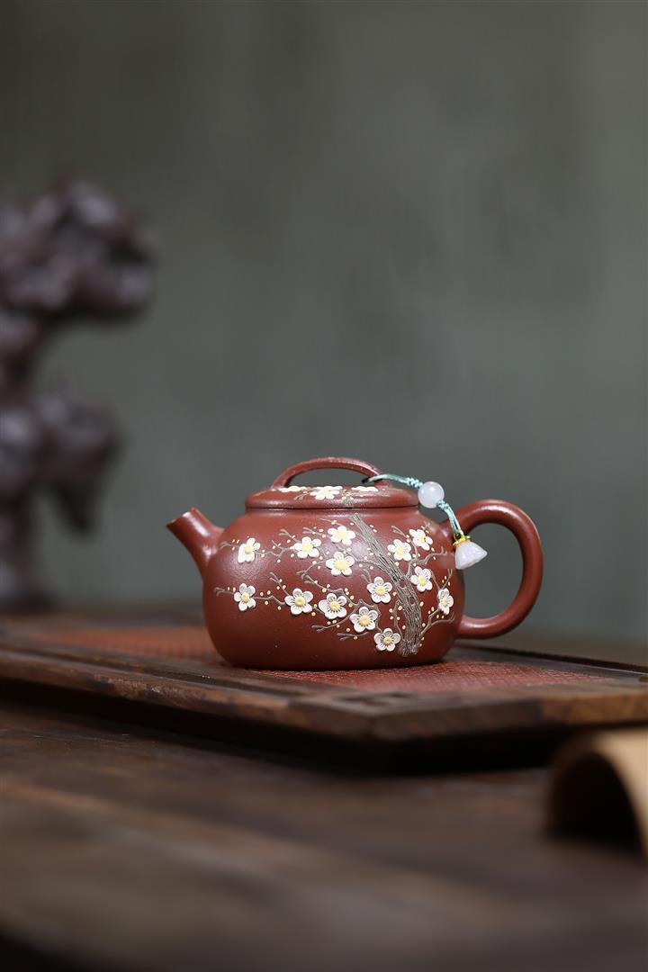 550cc原礦鐵血紅砂花好月圓漢瓦泡茶壺POT9496