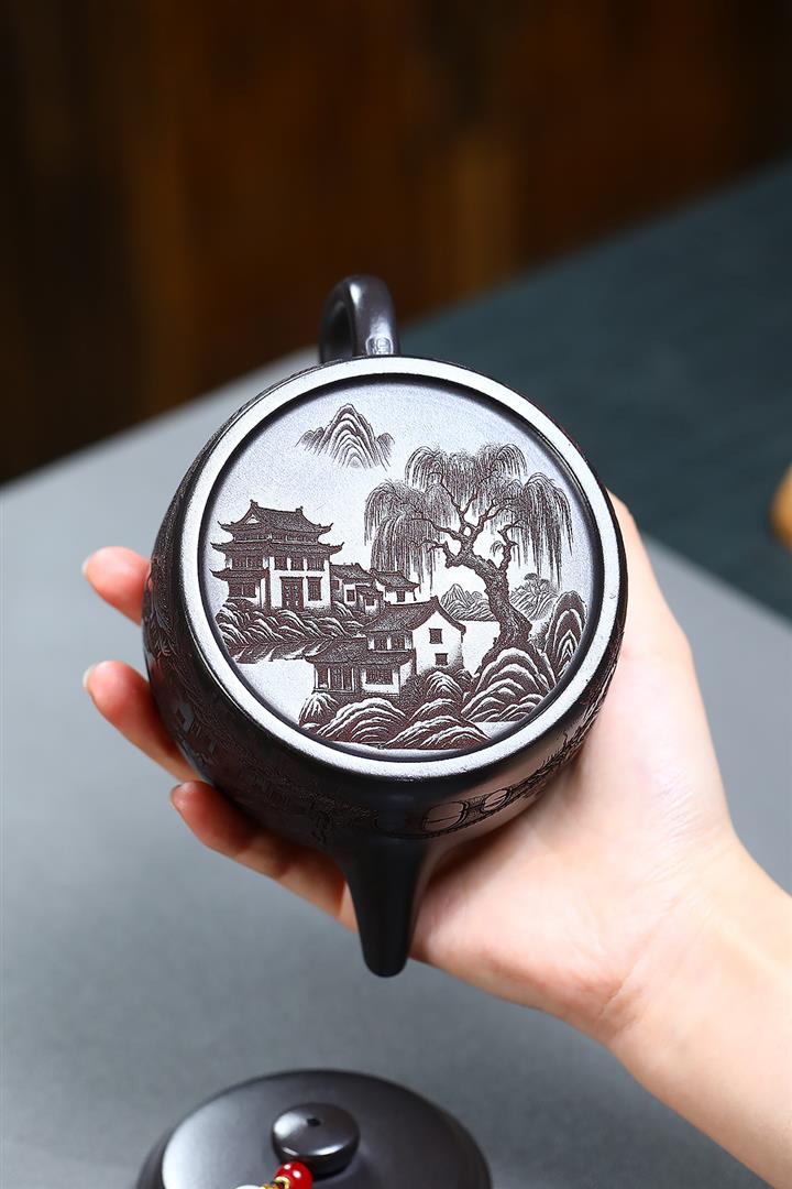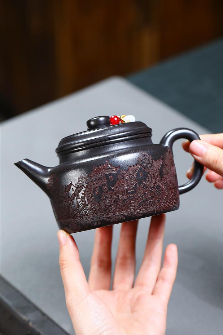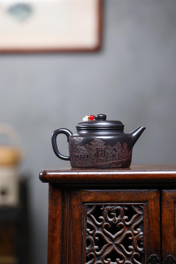 150cc原礦沈香泥柴燒刻字漢瓦泡茶壺POT9502