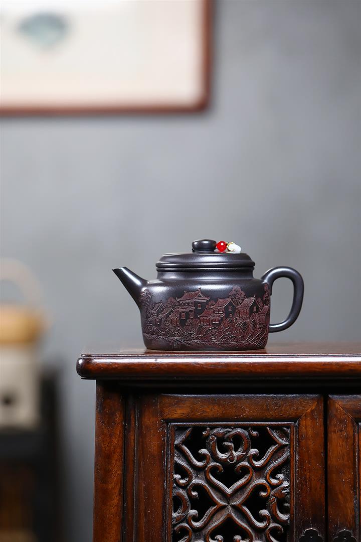 【作品介紹】此款壺形線條流暢,壺把,壺嘴,壺身壹氣呵成栩栩如生,是收藏把玩的好壺,泥料色澤古樸典雅,日久使用,漸露鋒芒,養成變化快,溫潤莊重,用其泡茶,使用的年代久,壺身就溫潤,泡出來的茶湯也就醇郁芳馨。