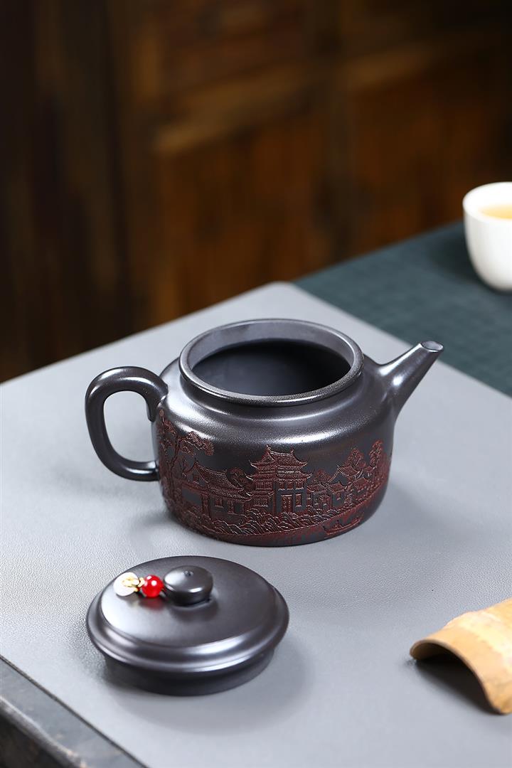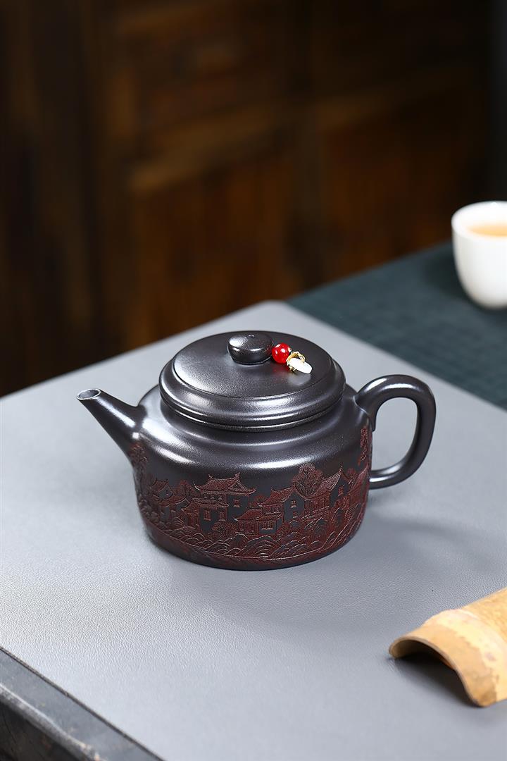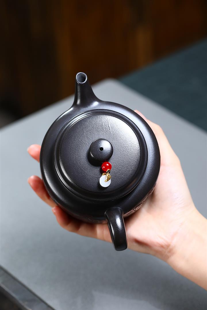550cc原礦鐵血紅砂花好月圓漢瓦泡茶壺POT9496