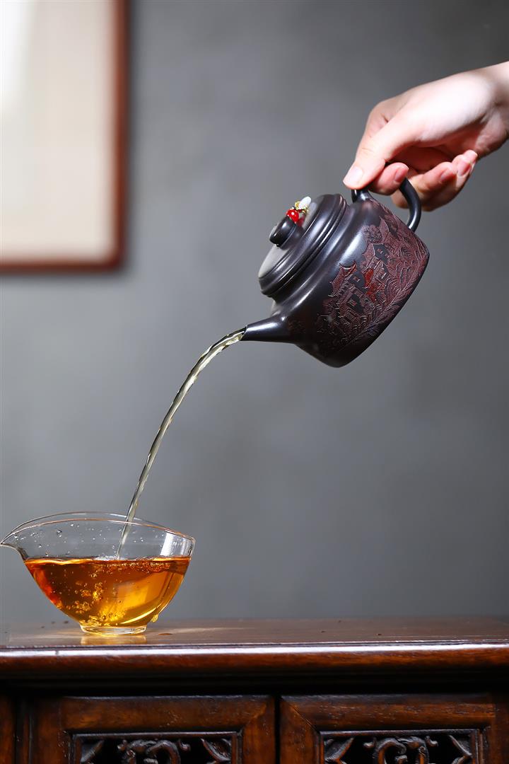 【泥料特點】砂土氣重,似淳實農民,日久使用,漸露鋒芒,養成變化,溫潤莊重。紫砂是壹種雙重氣孔結構的多孔性材質,氣孔微細,密度高。用紫砂壺沏茶,不失原味,且香不渙散,得茶之真香真味。紫砂使用越久,壺身色澤越發光亮照人,氣韻溫雅。紫砂壺長久使用器身會因撫摸擦拭,變得越發溫潤光澤。