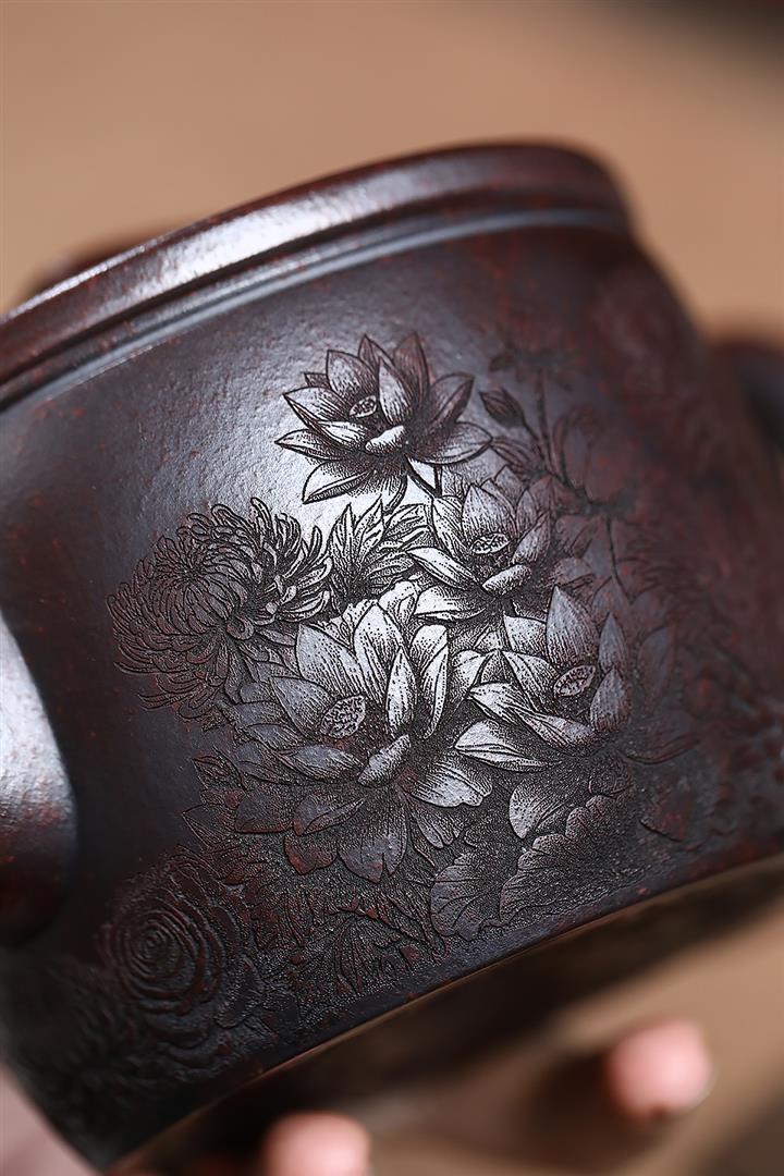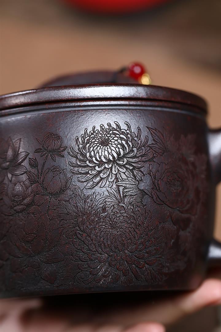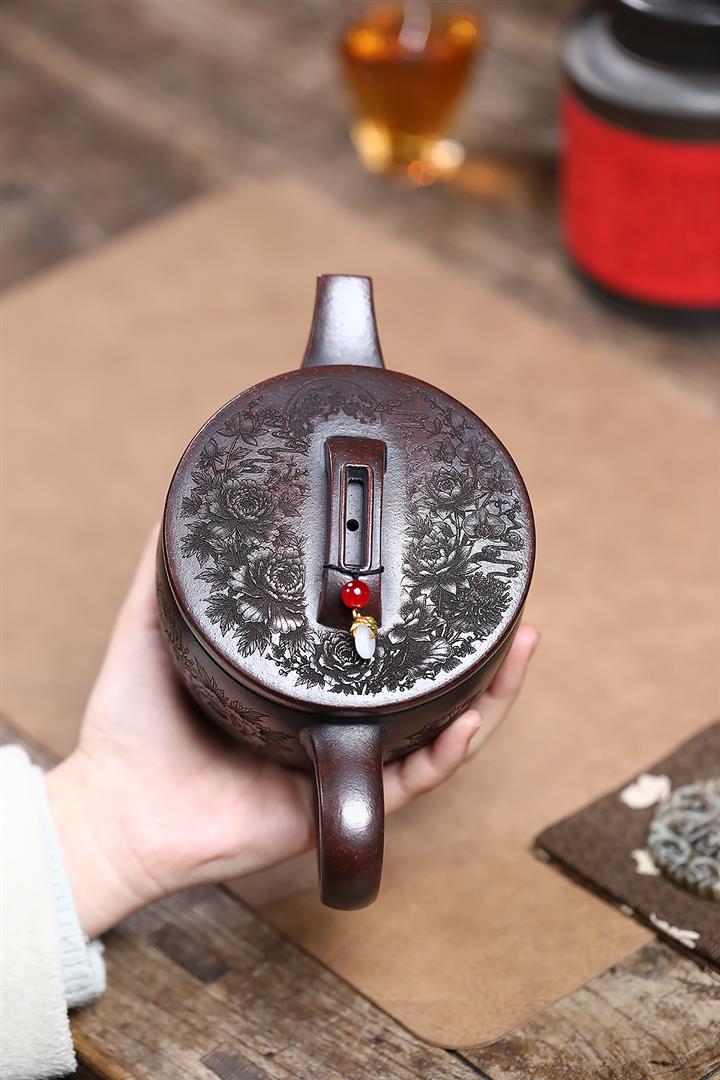 550cc原礦鐵血紅砂花好月圓漢瓦泡茶壺POT9496