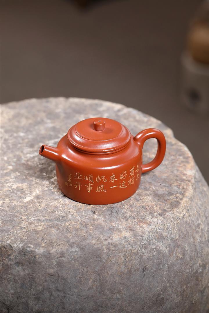 150cc原礦沈香泥柴燒刻字漢瓦泡茶壺POT9502