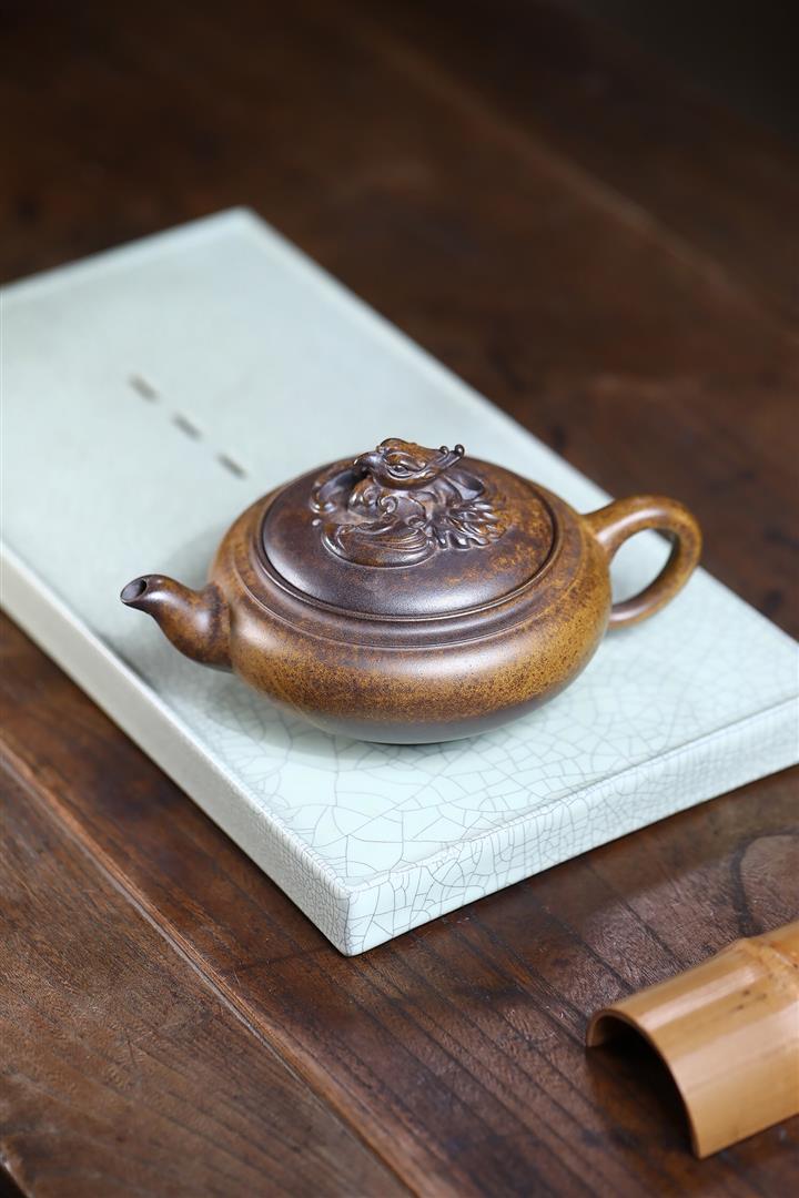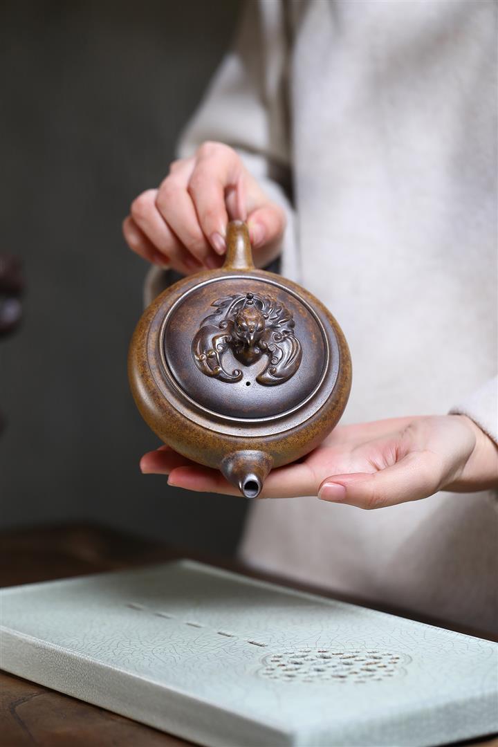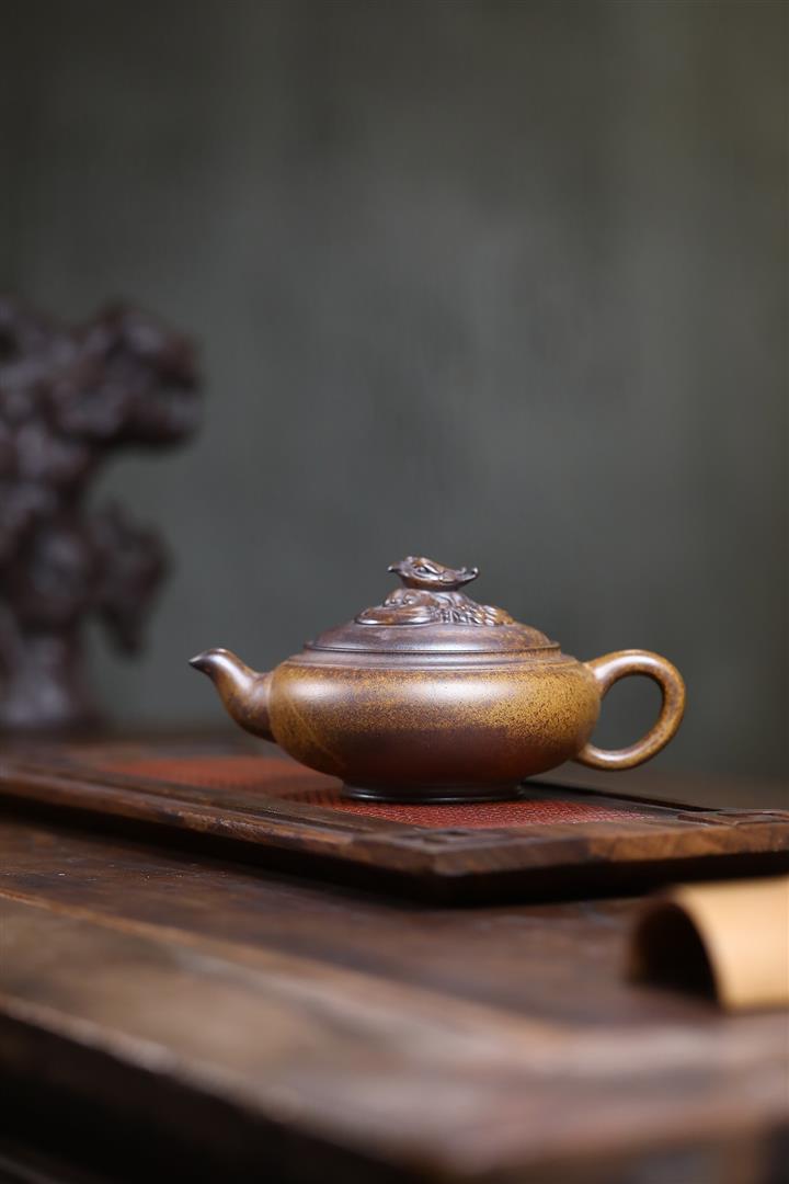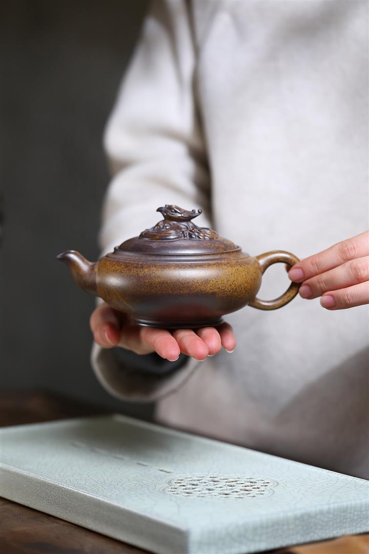 350cc龍窯高溫柴燒龍骨金砂提梁泡茶壺POT9503