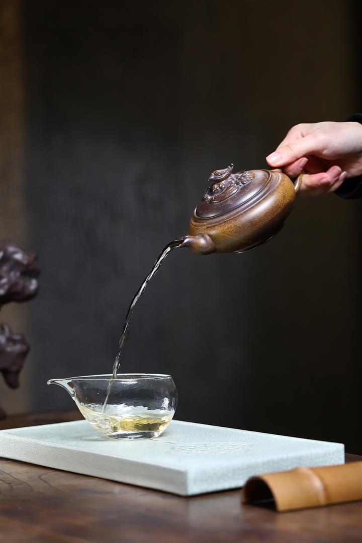 【泥料特點】砂土氣重,似淳實農民,日久使用,漸露鋒芒,養成變化,溫潤莊重。紫砂是壹種雙重氣孔結構的多孔性材質,氣孔微細,密度高。用紫砂壺沏茶,不失原味,且香不渙散,得茶之真香真味。紫砂使用越久,壺身色澤越發光亮照人,氣韻溫雅。紫砂壺長久使用器身會因撫摸擦拭,變得越發溫潤光澤。
