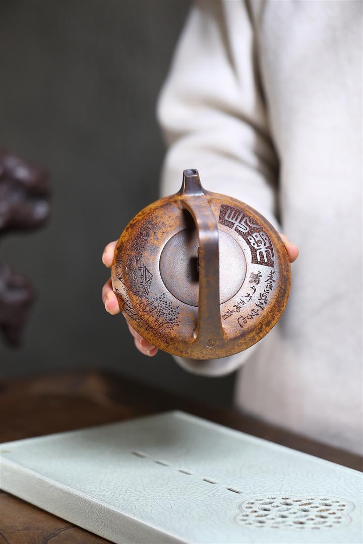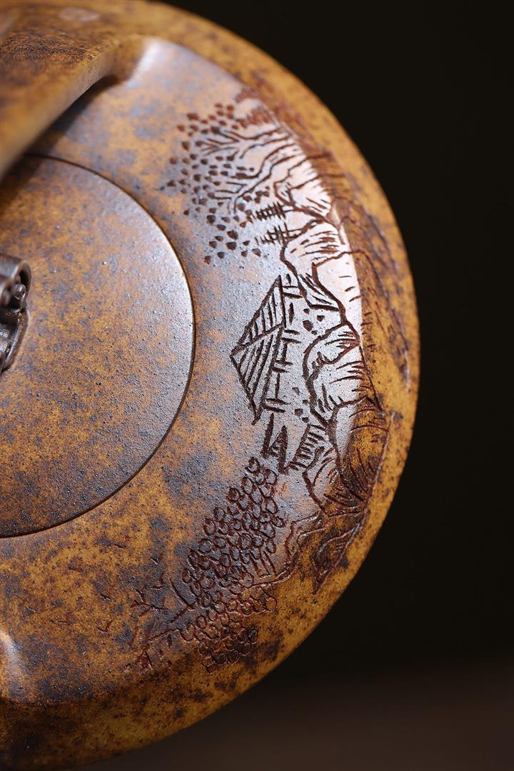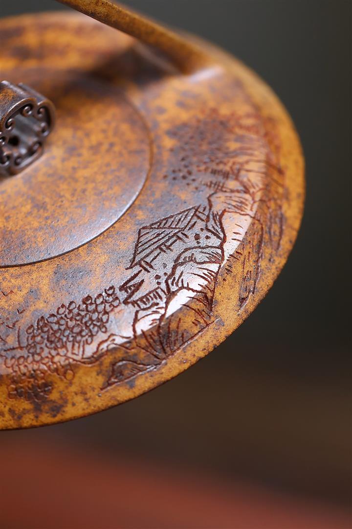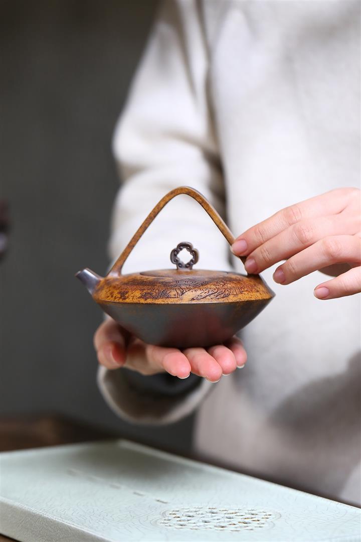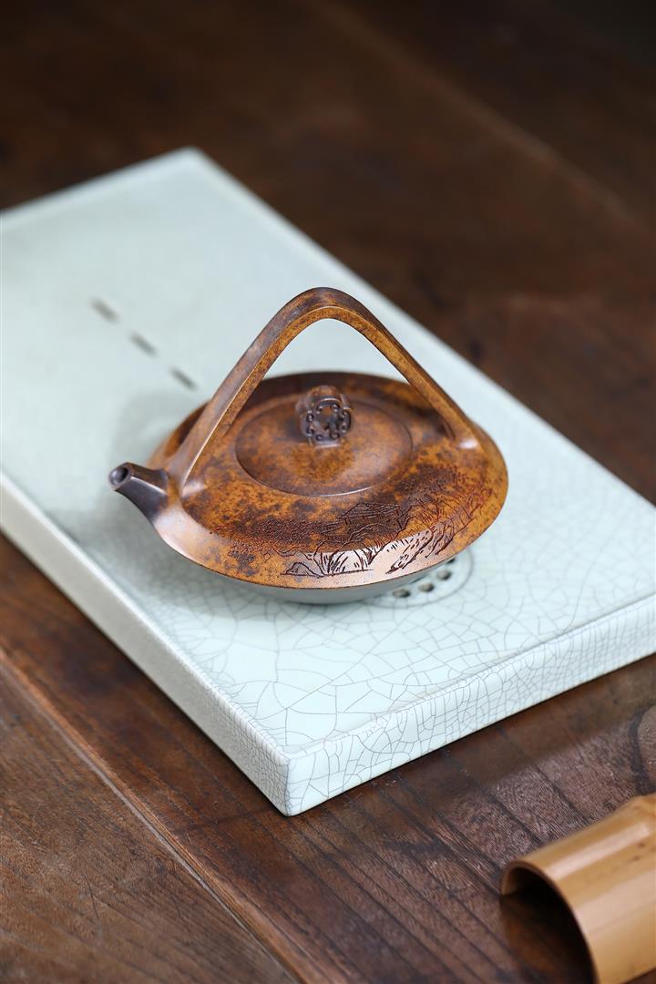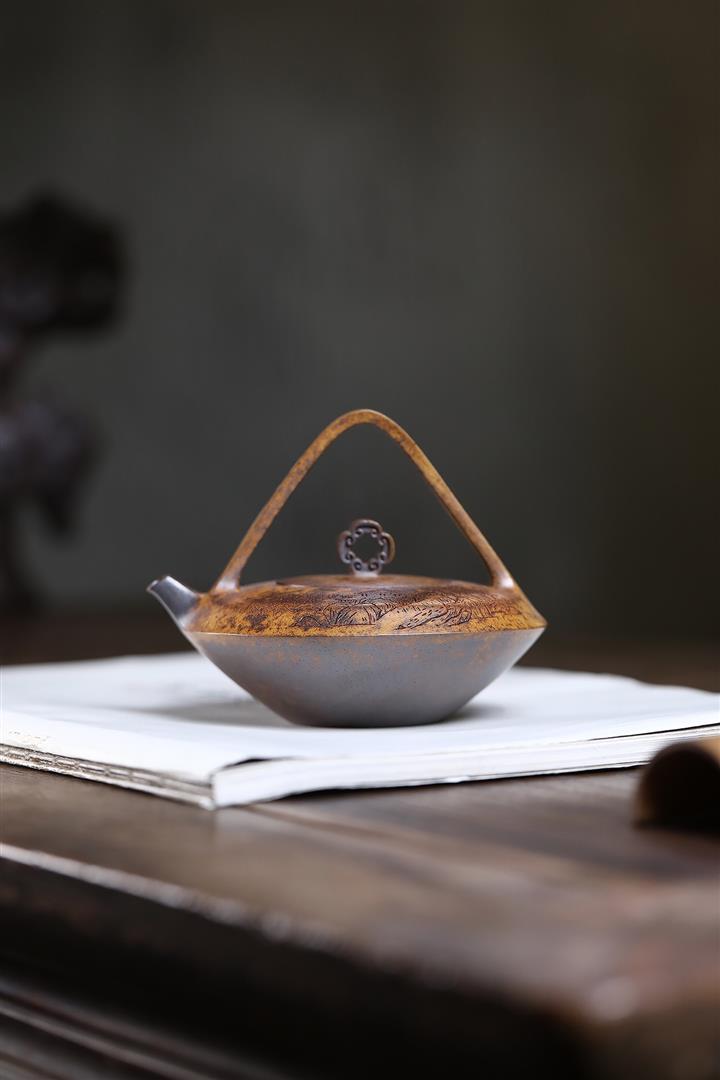350cc龍窯高溫柴燒龍骨金砂提梁泡茶壺POT9503