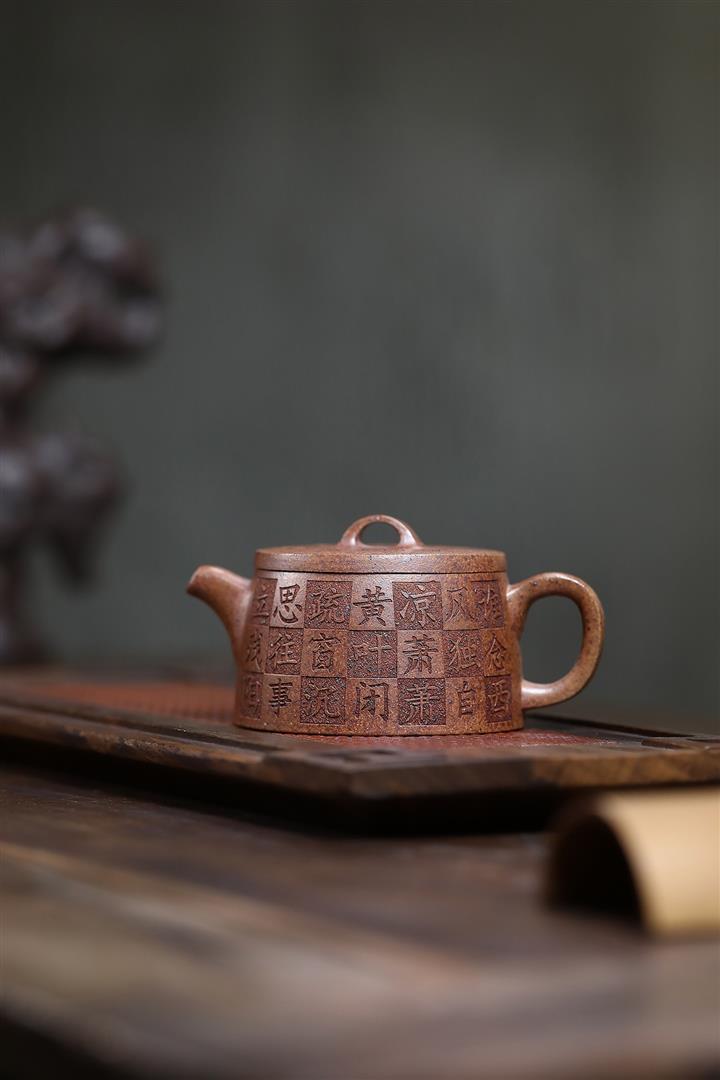 150cc原礦沈香泥柴燒刻字漢瓦泡茶壺POT9502