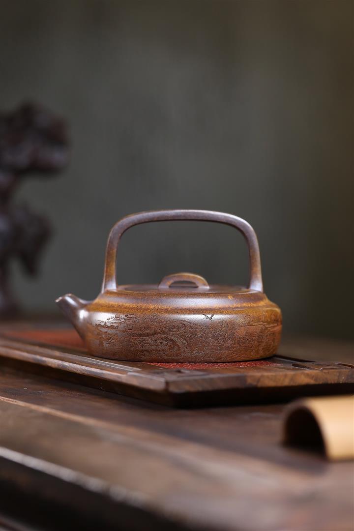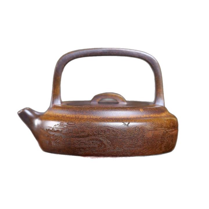 350cc龍窯高溫柴燒龍骨金砂提梁泡茶壺POT9503
