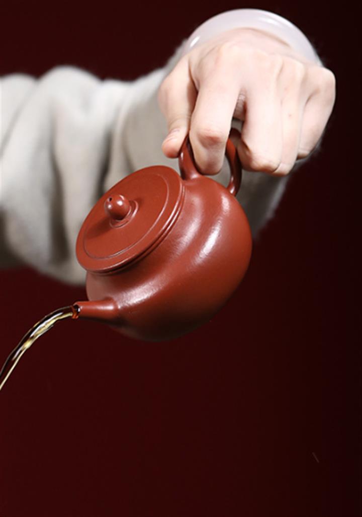 【泥料特點】砂土氣重,似淳實農民,日久使用,漸露鋒芒,養成變化,溫潤莊重。紫砂是壹種雙重氣孔結構的多孔性材質,氣孔微細,密度高。用紫砂壺沏茶,不失原味,且香不渙散,得茶之真香真味。紫砂使用越久,壺身色澤越發光亮照人,氣韻溫雅。紫砂壺長久使用器身會因撫摸擦拭,變得越發溫潤光澤。