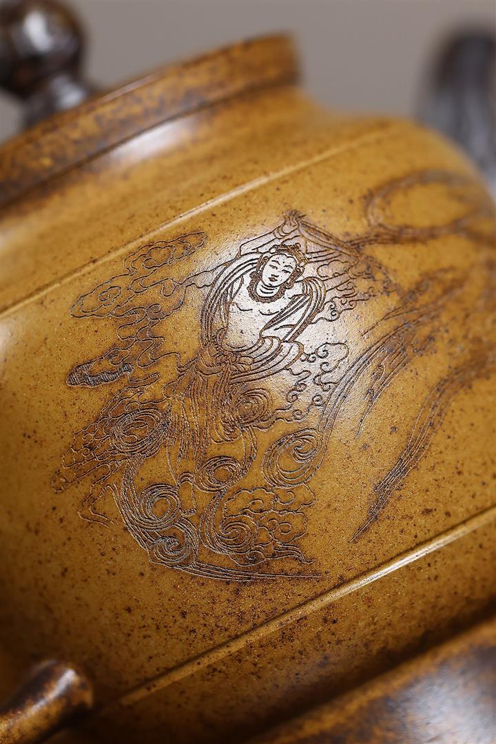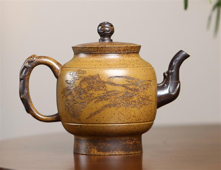 【泥料特點】砂土氣重,似淳實農民,日久使用,漸露鋒芒,養成變化,溫潤莊重。紫砂是壹種雙重氣孔結構的多孔性材質,氣孔微細,密度高。用紫砂壺沏茶,不失原味,且香不渙散,得茶之真香真味。紫砂使用越久,壺身色澤越發光亮照人,氣韻溫雅。紫砂壺長久使用器身會因撫摸擦拭,變得越發溫潤光澤。