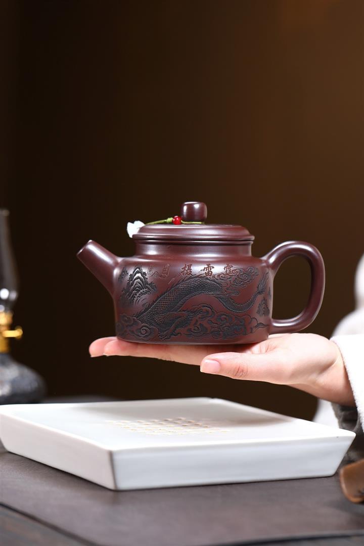 480cc原礦紫朱泥龍紋德鐘泡茶壺POT9520