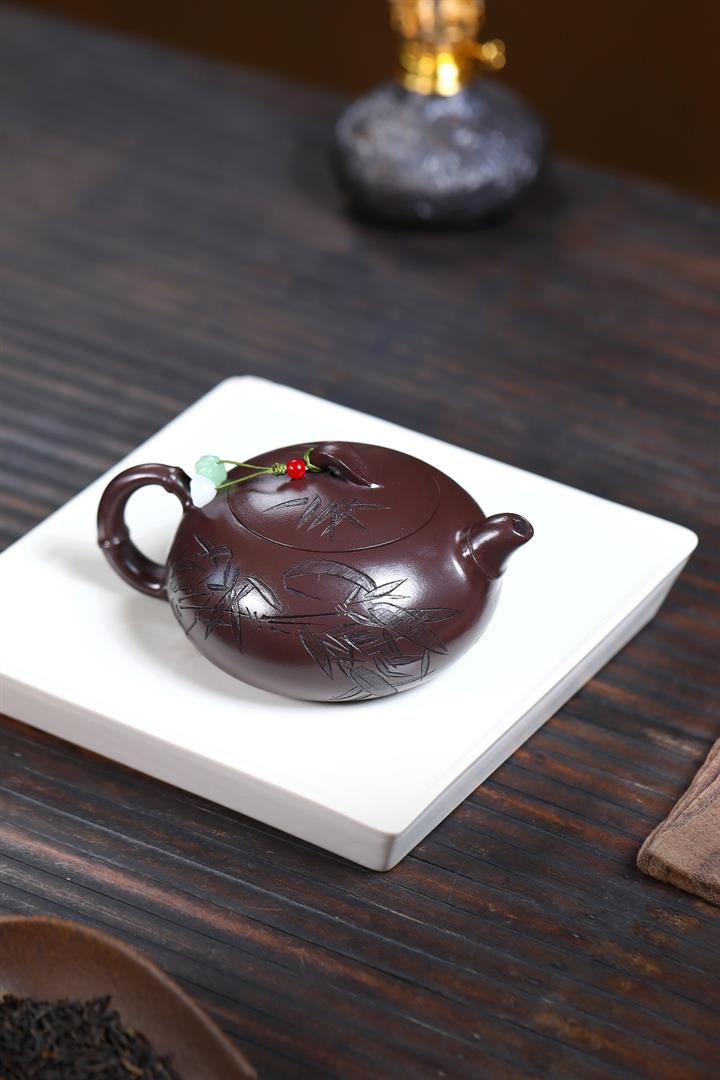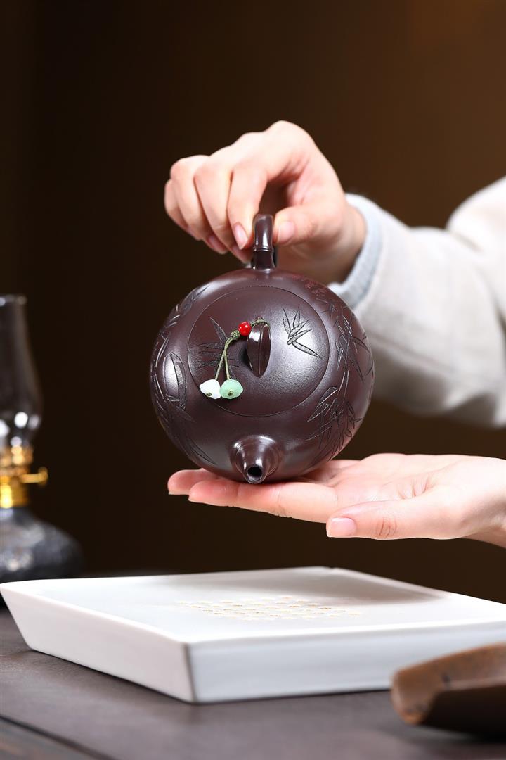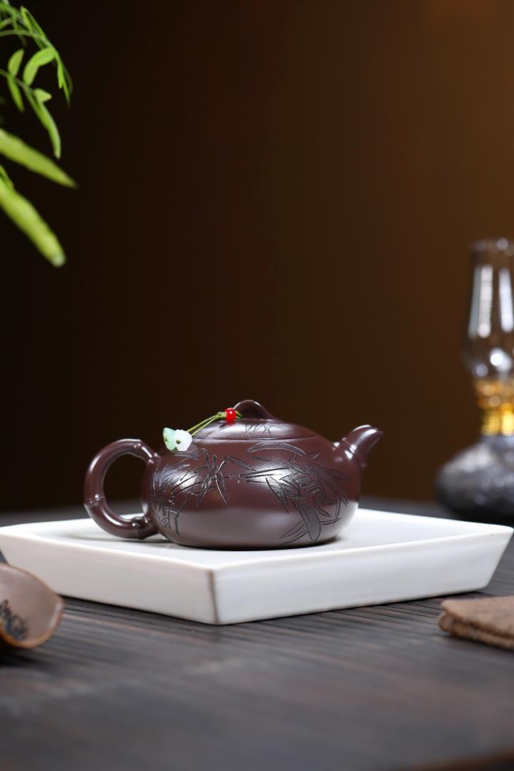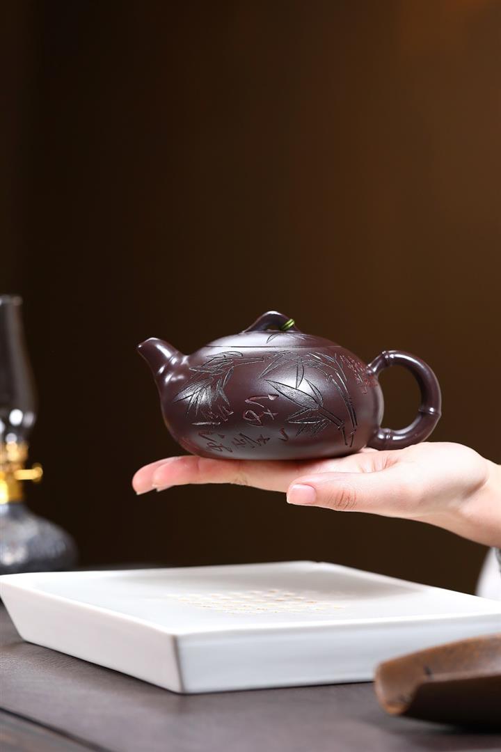 300cc原礦紫朱泥勁竹圓瓦泡茶壺POT9521