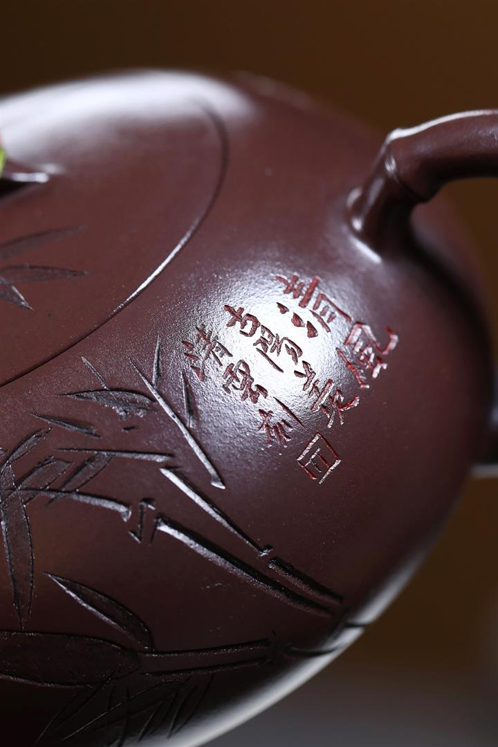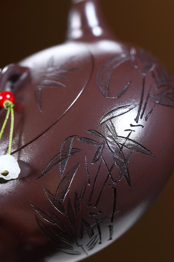230cc原礦紫泥刻繪百福德鐘泡茶壺POT9529