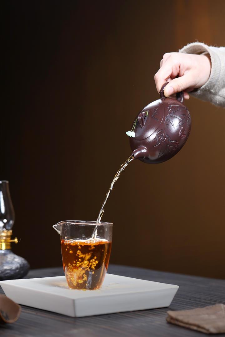 【泥料特點】砂土氣重,似淳實農民,日久使用,漸露鋒芒,養成變化,溫潤莊重。紫砂是壹種雙重氣孔結構的多孔性材質,氣孔微細,密度高。用紫砂壺沏茶,不失原味,且香不渙散,得茶之真香真味。紫砂使用越久,壺身色澤越發光亮照人,氣韻溫雅。紫砂壺長久使用器身會因撫摸擦拭,變得越發溫潤光澤。
