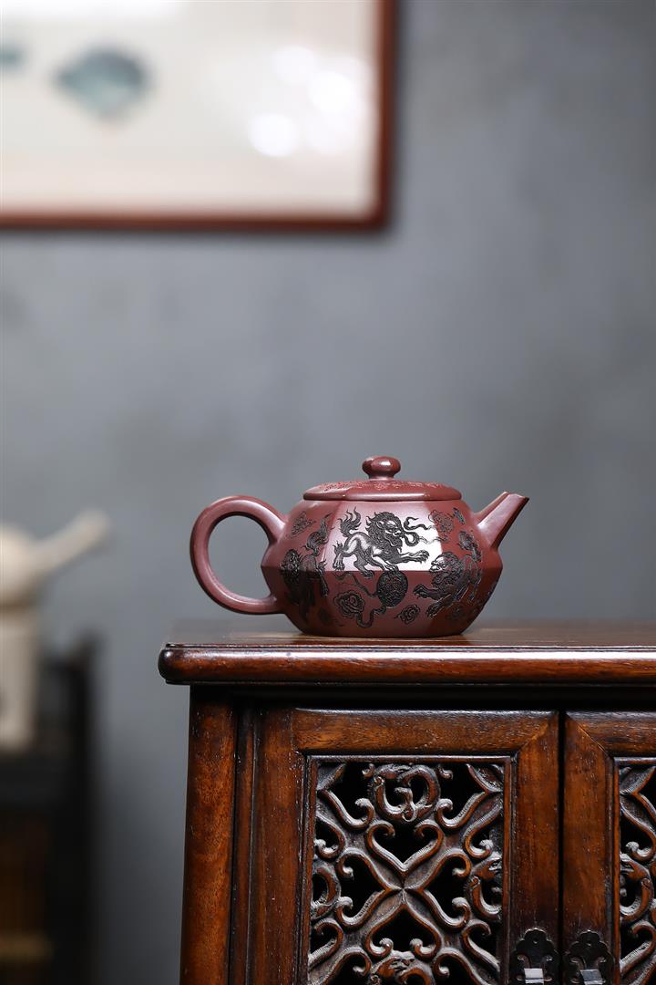 230cc原礦紫泥刻繪百福德鐘泡茶壺POT9529