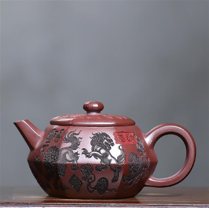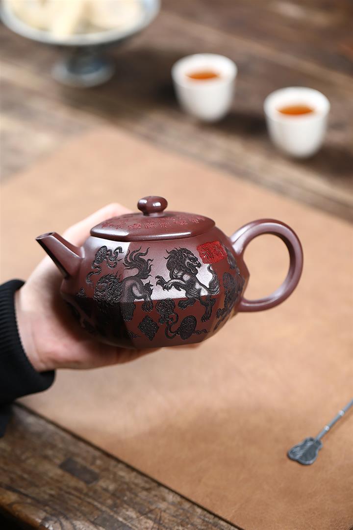 390cc原礦老紫泥六方福獅獻瑞茶壺POT9525