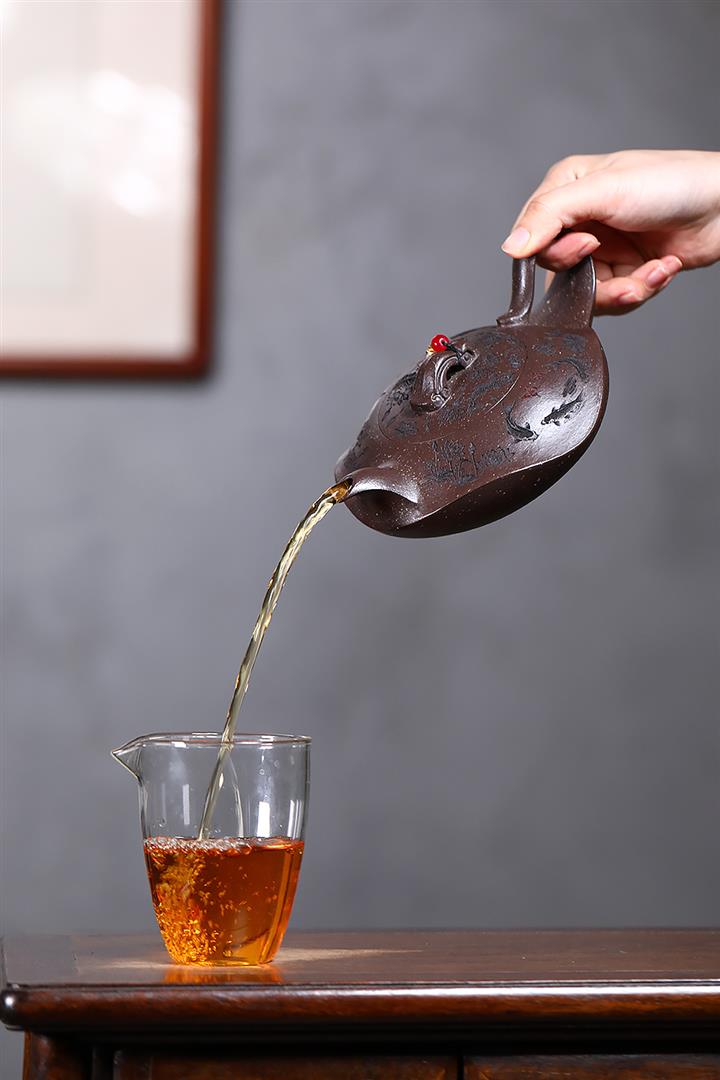 【泥料特點】砂土氣重,似淳實農民,日久使用,漸露鋒芒,養成變化,溫潤莊重。紫砂是壹種雙重氣孔結構的多孔性材質,氣孔微細,密度高。用紫砂壺沏茶,不失原味,且香不渙散,得茶之真香真味。紫砂使用越久,壺身色澤越發光亮照人,氣韻溫雅。紫砂壺長久使用器身會因撫摸擦拭,變得越發溫潤光澤。