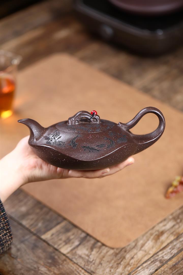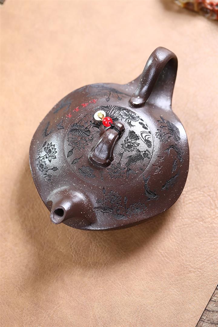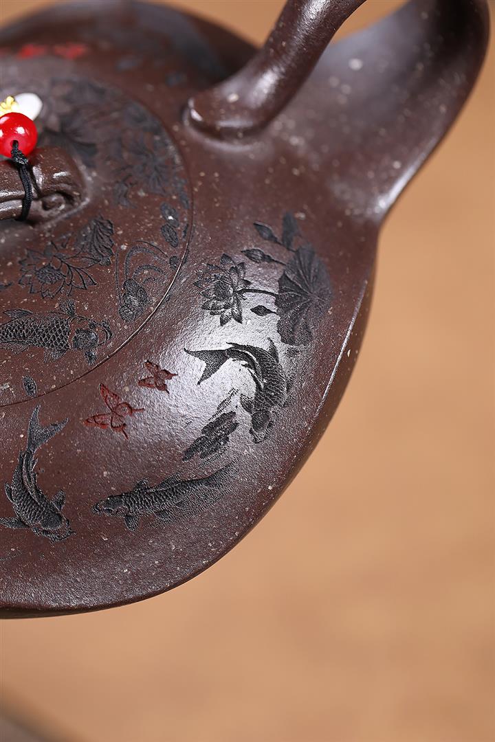 350cc原礦雪花泥魚戲水雲間泡茶壺POT9526