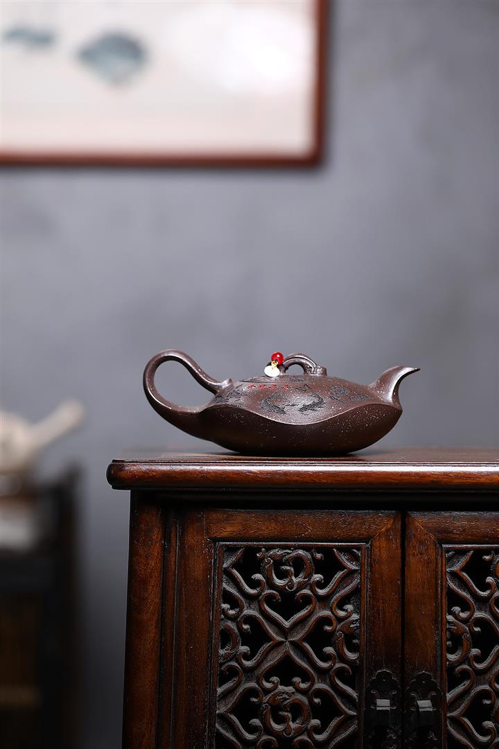 230cc原礦紫泥刻繪百福德鐘泡茶壺POT9529