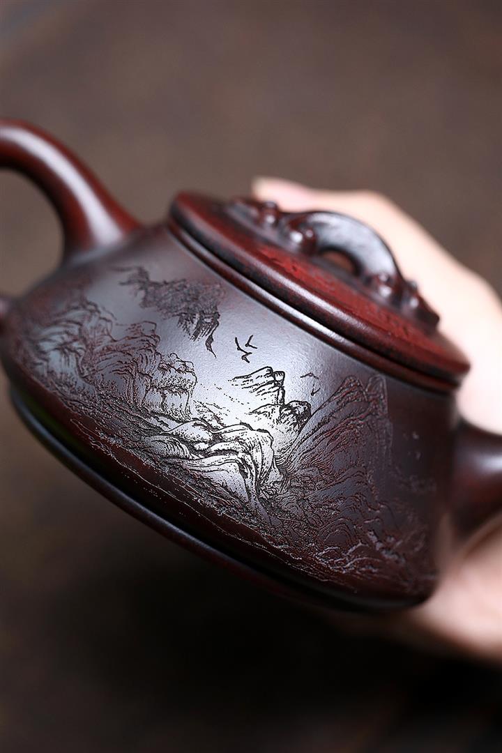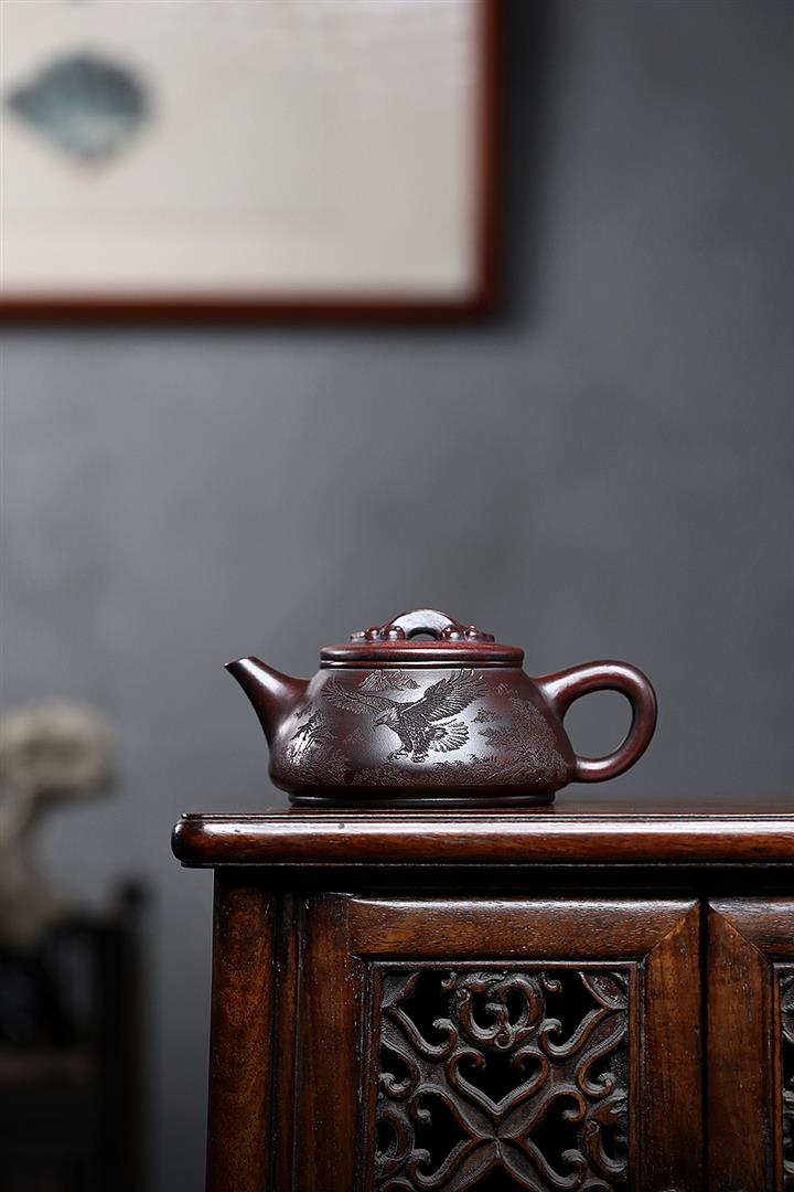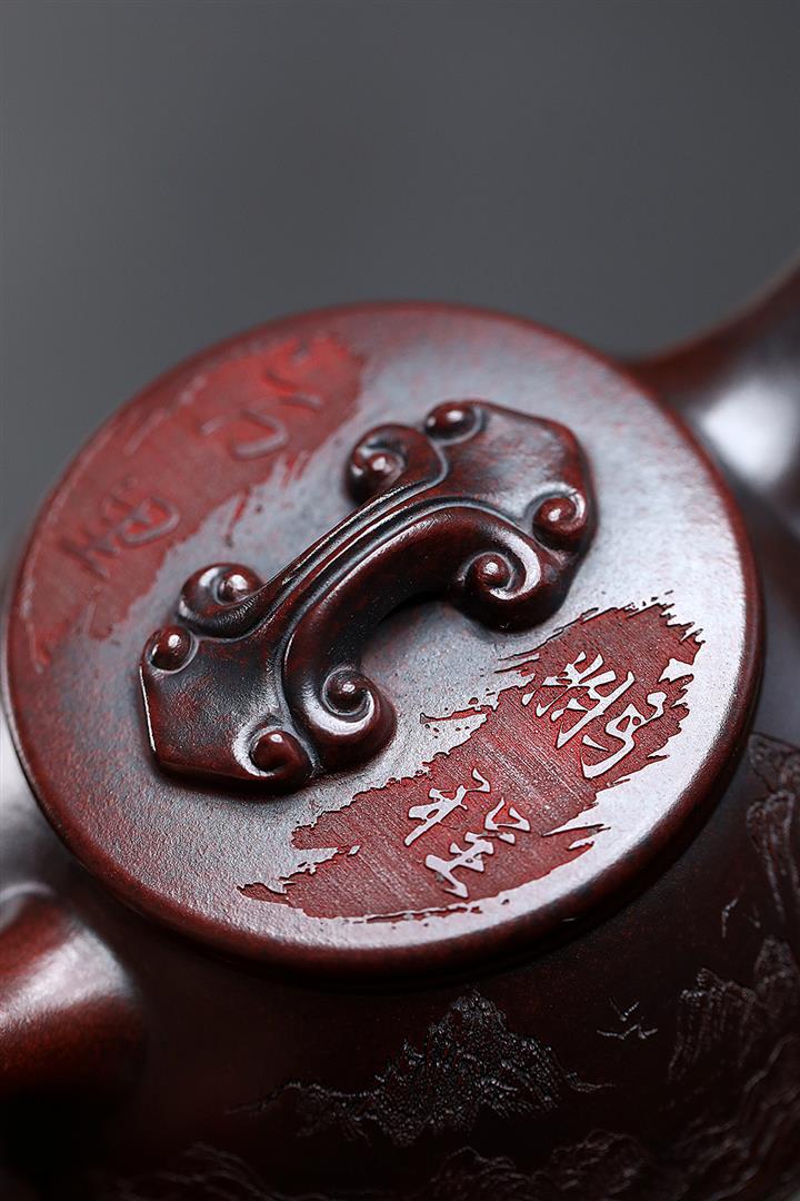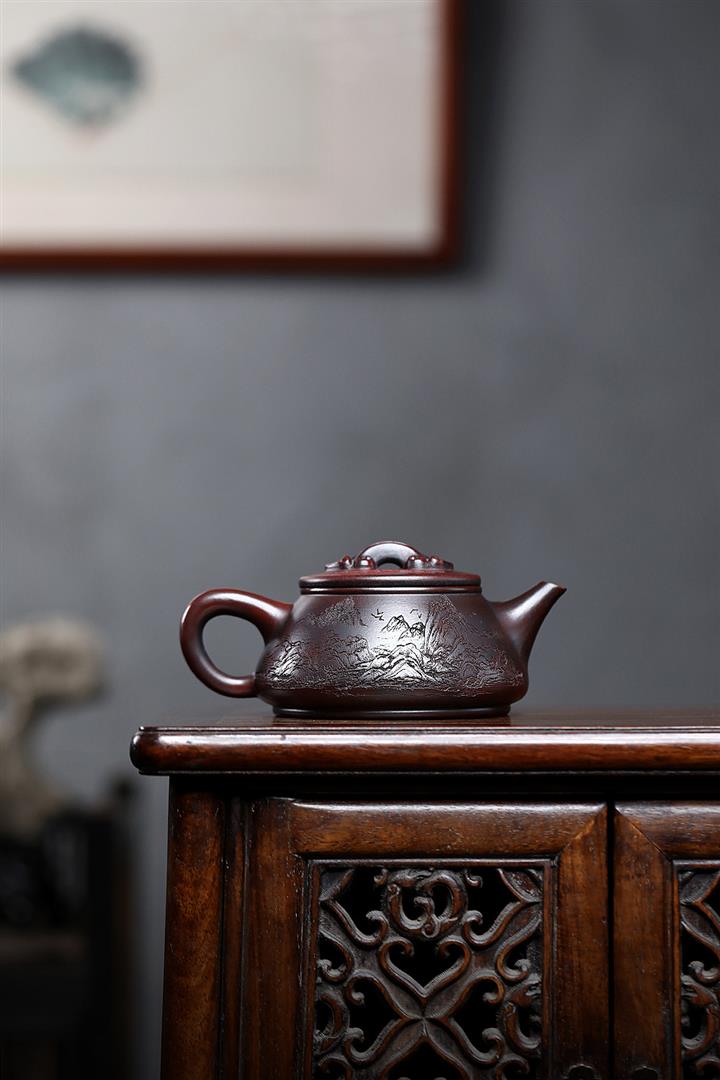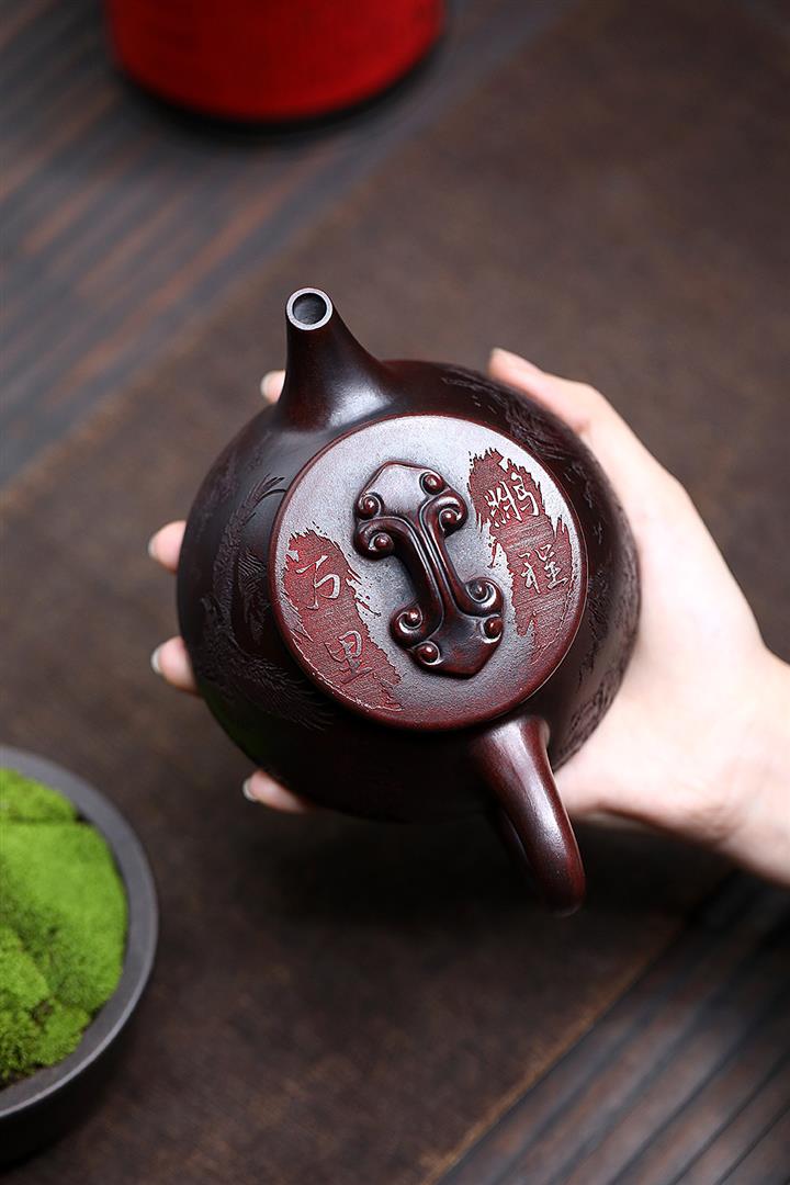230cc原礦紫泥刻繪百福德鐘泡茶壺POT9529