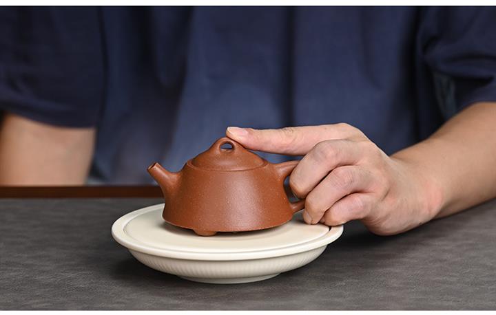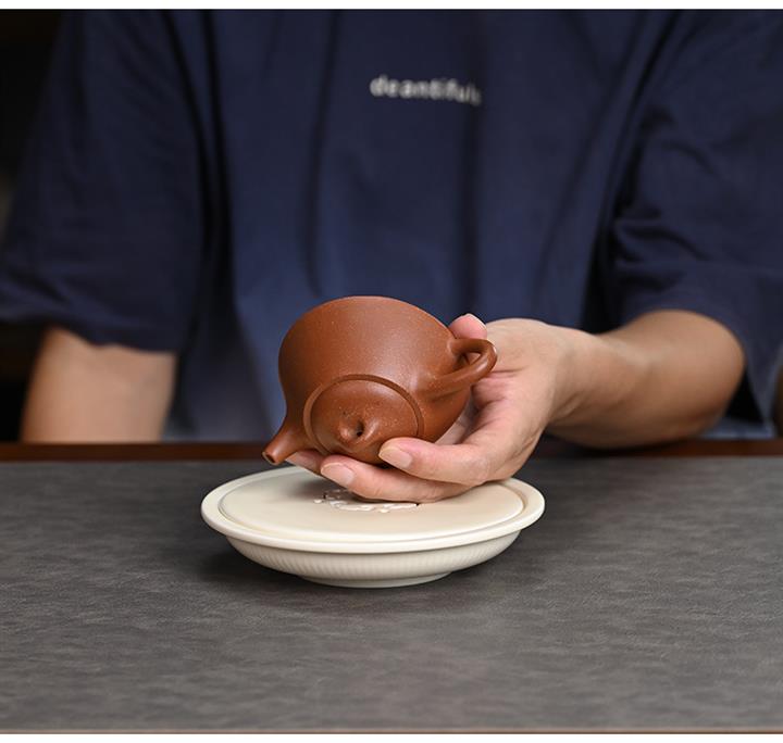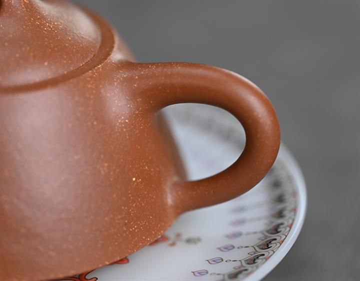 【泥料特點】砂土氣重,似淳實農民,日久使用,漸露鋒芒,養成變化,溫潤莊重。紫砂是壹種雙重氣孔結構的多孔性材質,氣孔微細,密度高。用紫砂壺沏茶,不失原味,且香不渙散,得茶之真香真味。紫砂使用越久,壺身色澤越發光亮照人,氣韻溫雅。紫砂壺長久使用器身會因撫摸擦拭,變得越發溫潤光澤。