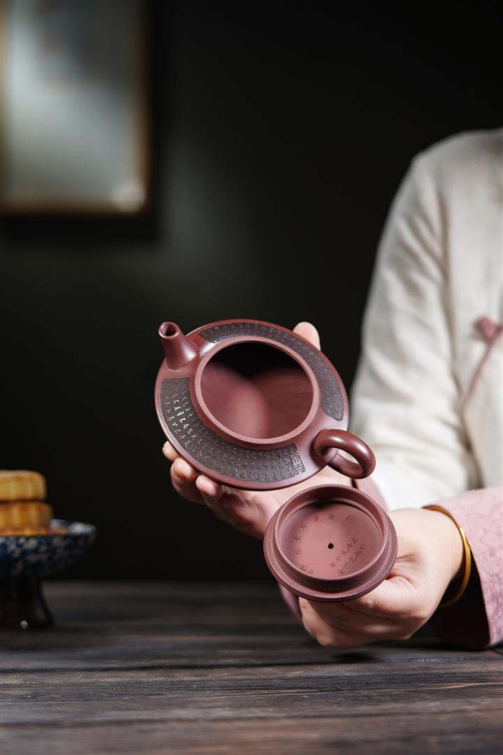 【泥料特點】砂土氣重,似淳實農民,日久使用,漸露鋒芒,養成變化,溫潤莊重。紫砂是壹種雙重氣孔結構的多孔性材質,氣孔微細,密度高。用紫砂壺沏茶,不失原味,且香不渙散,得茶之真香真味。紫砂使用越久,壺身色澤越發光亮照人,氣韻溫雅。紫砂壺長久使用器身會因撫摸擦拭,變得越發溫潤光澤。