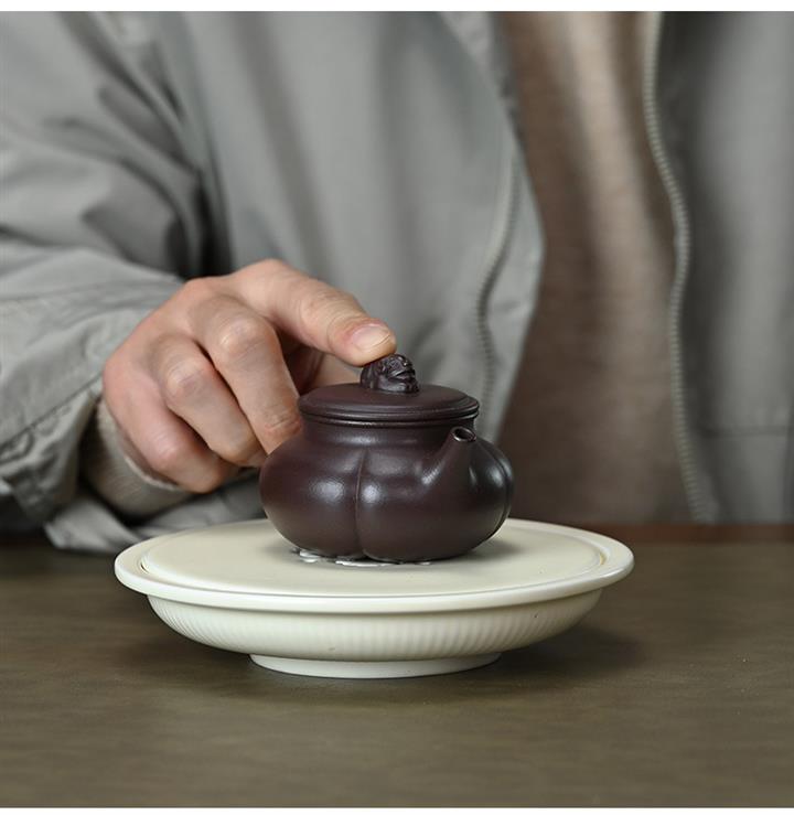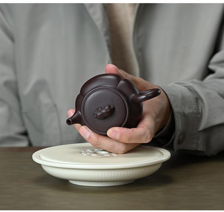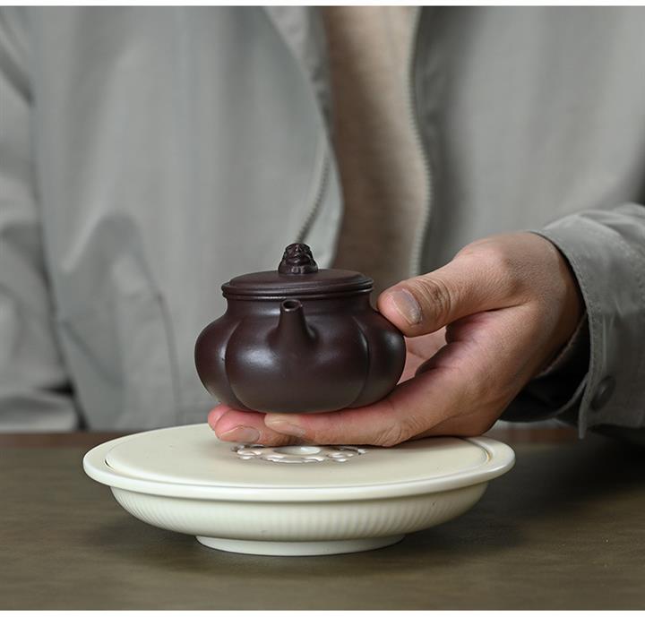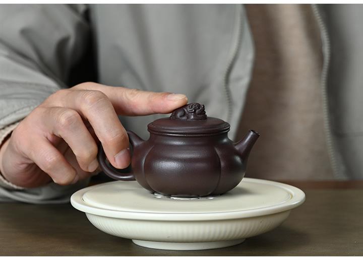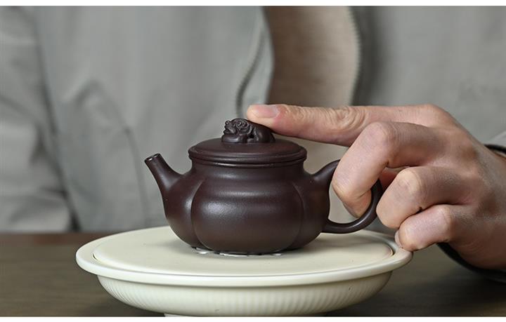 【泥料特點】砂土氣重,似淳實農民,日久使用,漸露鋒芒,養成變化,溫潤莊重。紫砂是壹種雙重氣孔結構的多孔性材質,氣孔微細,密度高。用紫砂壺沏茶,不失原味,且香不渙散,得茶之真香真味。紫砂使用越久,壺身色澤越發光亮照人,氣韻溫雅。紫砂壺長久使用器身會因撫摸擦拭,變得越發溫潤光澤。