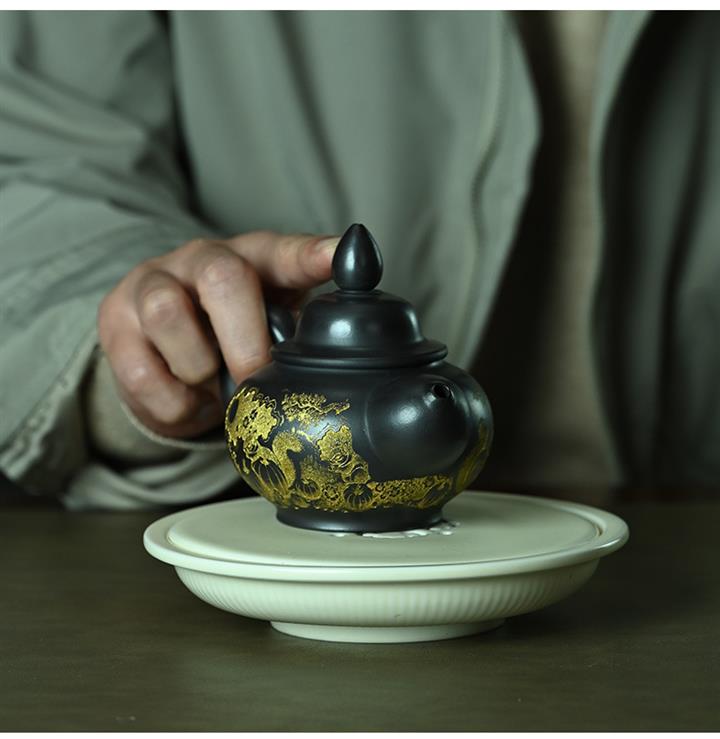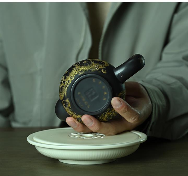【泥料特點】砂土氣重,似淳實農民,日久使用,漸露鋒芒,養成變化,溫潤莊重。紫砂是壹種雙重氣孔結構的多孔性材質,氣孔微細,密度高。用紫砂壺沏茶,不失原味,且香不渙散,得茶之真香真味。紫砂使用越久,壺身色澤越發光亮照人,氣韻溫雅。紫砂壺長久使用器身會因撫摸擦拭,變得越發溫潤光澤。