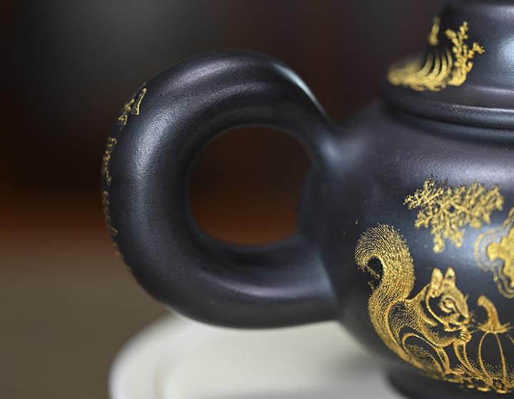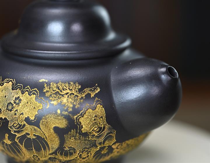 320cc原礦石黃泥刻繪松鼠泡茶壺POT9545