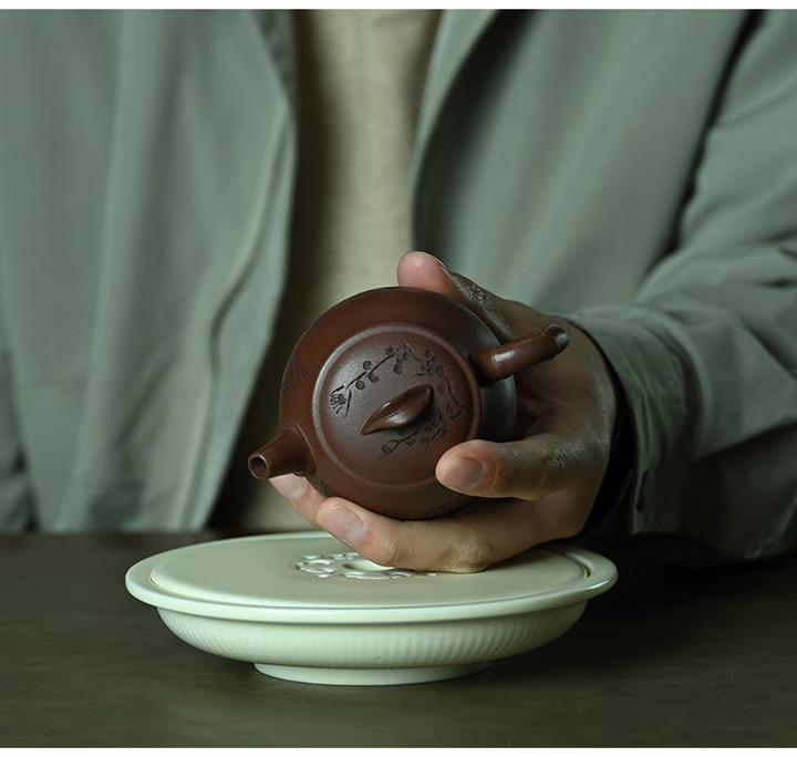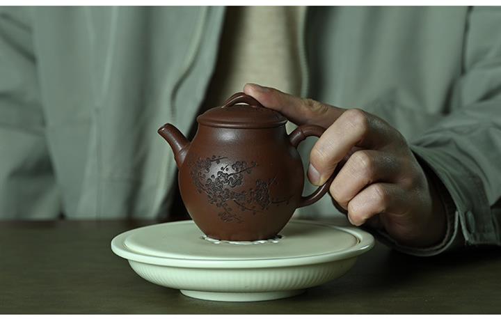 【泥料特點】砂土氣重,似淳實農民,日久使用,漸露鋒芒,養成變化,溫潤莊重。紫砂是壹種雙重氣孔結構的多孔性材質,氣孔微細,密度高。用紫砂壺沏茶,不失原味,且香不渙散,得茶之真香真味。紫砂使用越久,壺身色澤越發光亮照人,氣韻溫雅。紫砂壺長久使用器身會因撫摸擦拭,變得越發溫潤光澤。