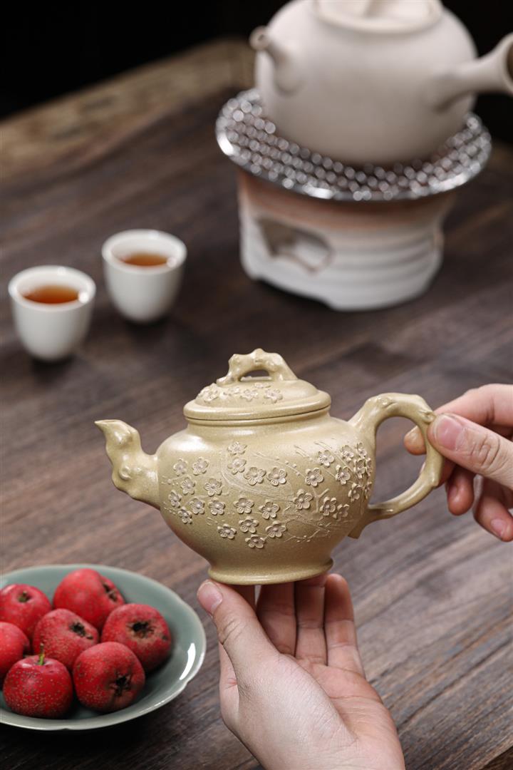 320cc原礦本綠泥梅花報春泡茶壺POT9554
