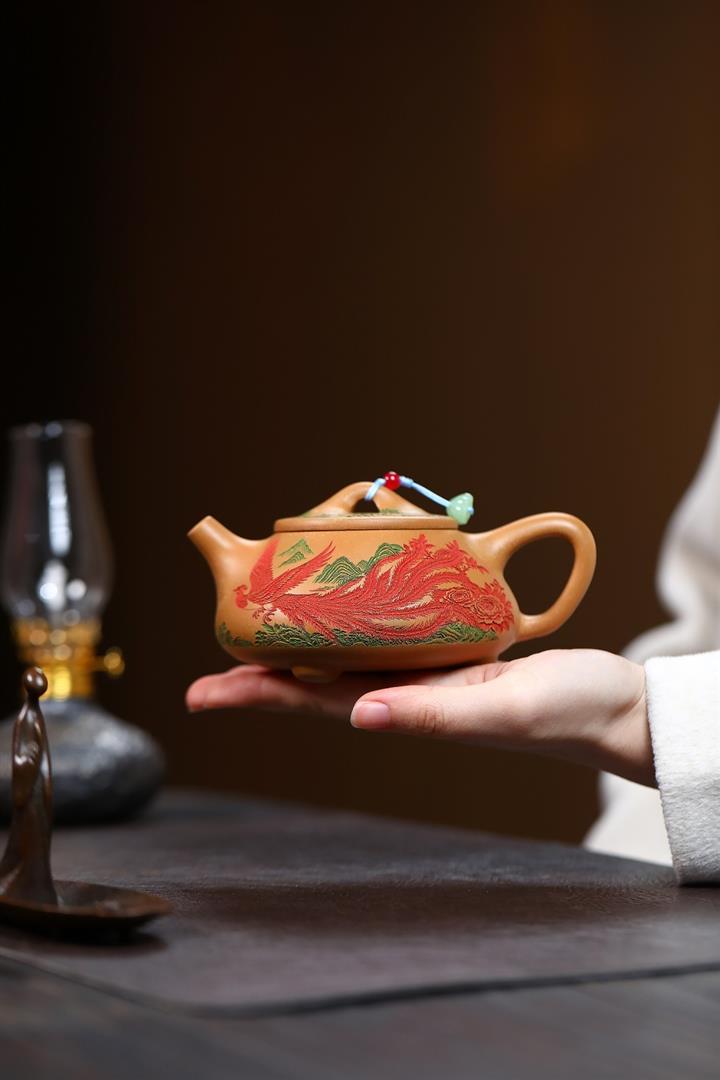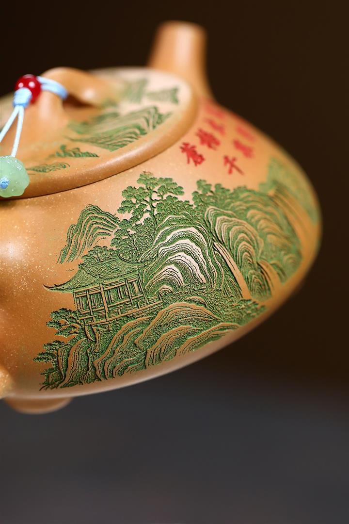 【作品介紹】此款壺形線條流暢,壺把,壺嘴,壺身壹氣呵成栩栩如生,是收藏把玩的好壺,泥料色澤古樸典雅,日久使用,漸露鋒芒,養成變化快,溫潤莊重,用其泡茶,使用的年代久,壺身就溫潤,泡出來的茶湯也就醇郁芳馨。