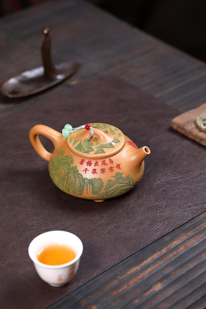【泥料特點】砂土氣重,似淳實農民,日久使用,漸露鋒芒,養成變化,溫潤莊重。紫砂是壹種雙重氣孔結構的多孔性材質,氣孔微細,密度高。用紫砂壺沏茶,不失原味,且香不渙散,得茶之真香真味。紫砂使用越久,壺身色澤越發光亮照人,氣韻溫雅。紫砂壺長久使用器身會因撫摸擦拭,變得越發溫潤光澤。