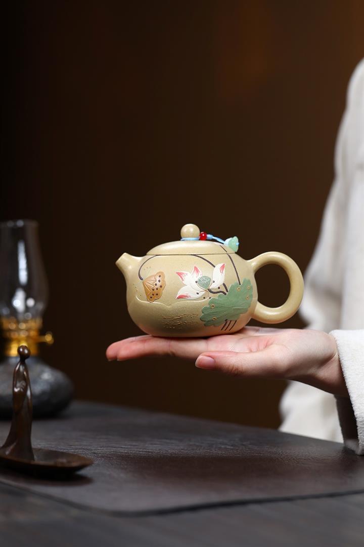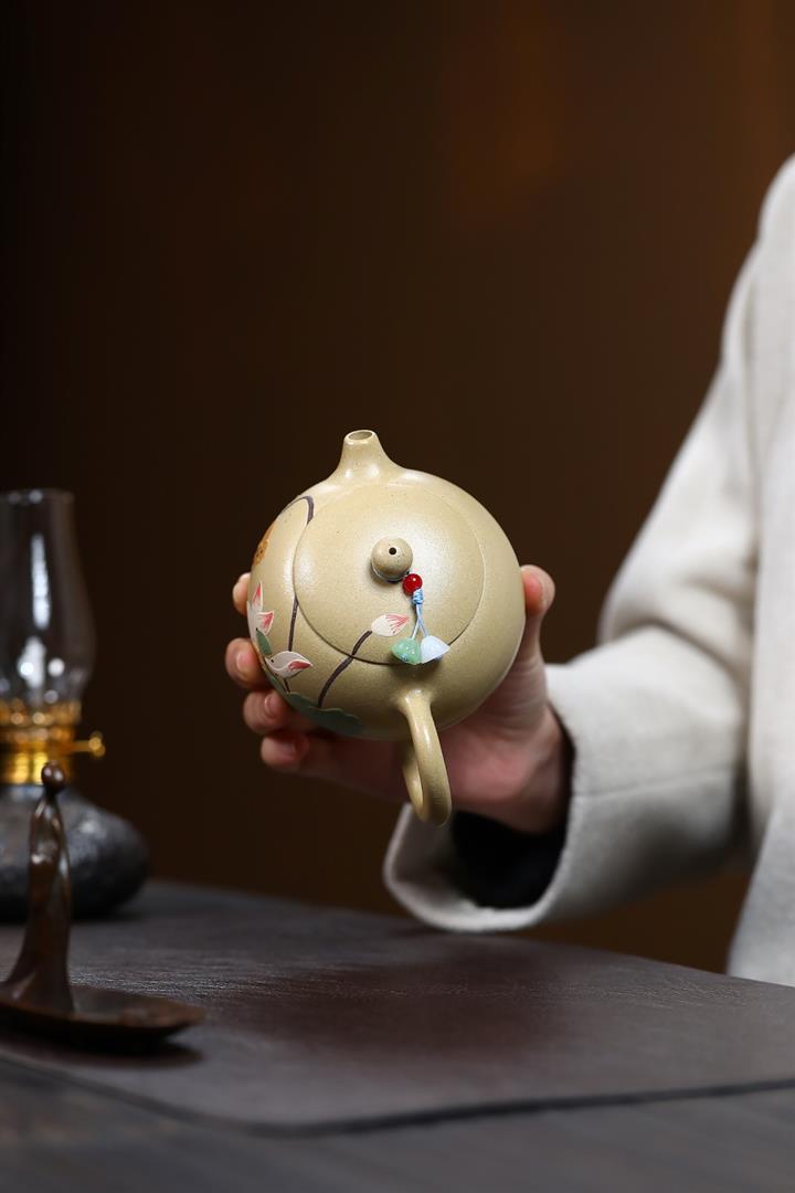 240cc原礦優質綠泥荷塘清趣明爐泡茶壺POT9575