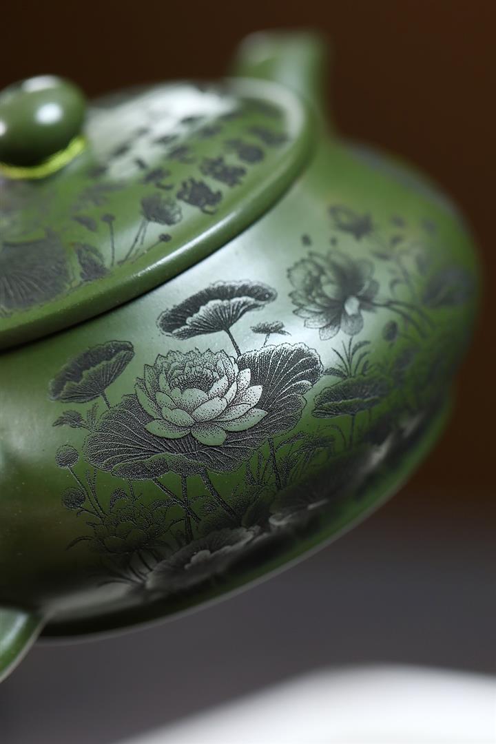 240cc原礦優質綠泥荷塘清趣明爐泡茶壺POT9575