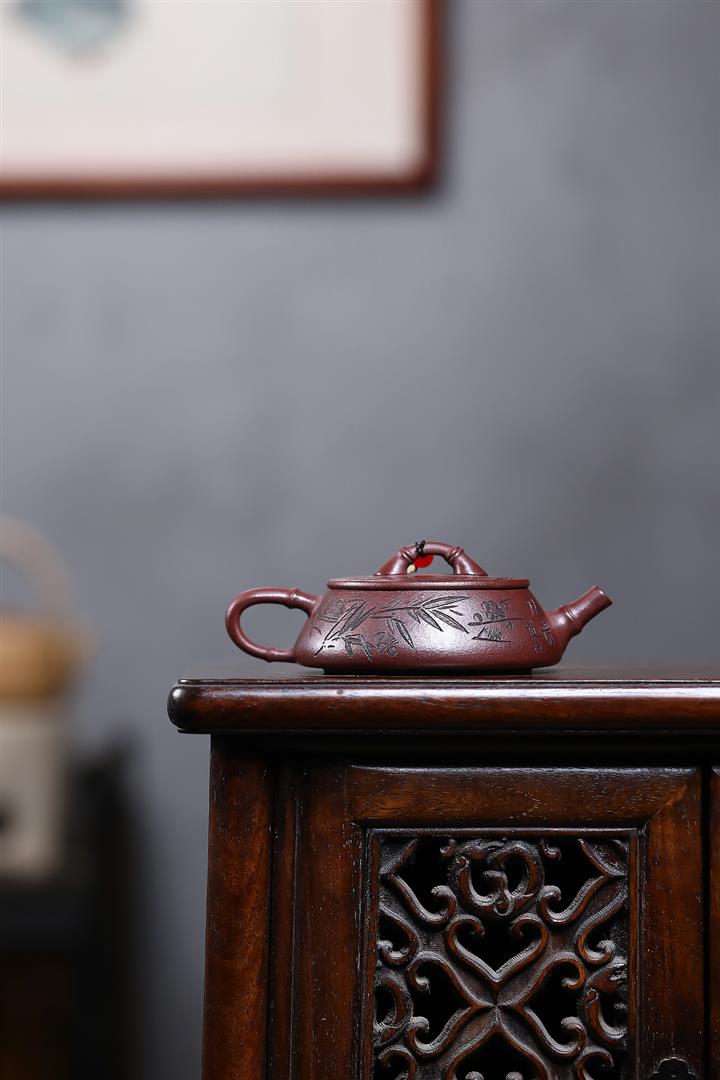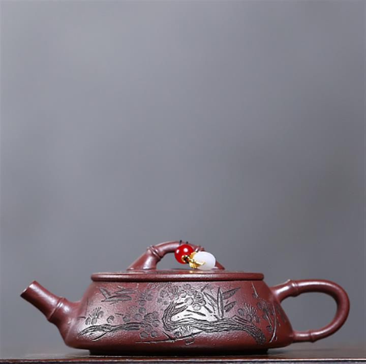 70cc/90cc原礦朱泥/君子蘭側把唐羽泡茶壺POT9587