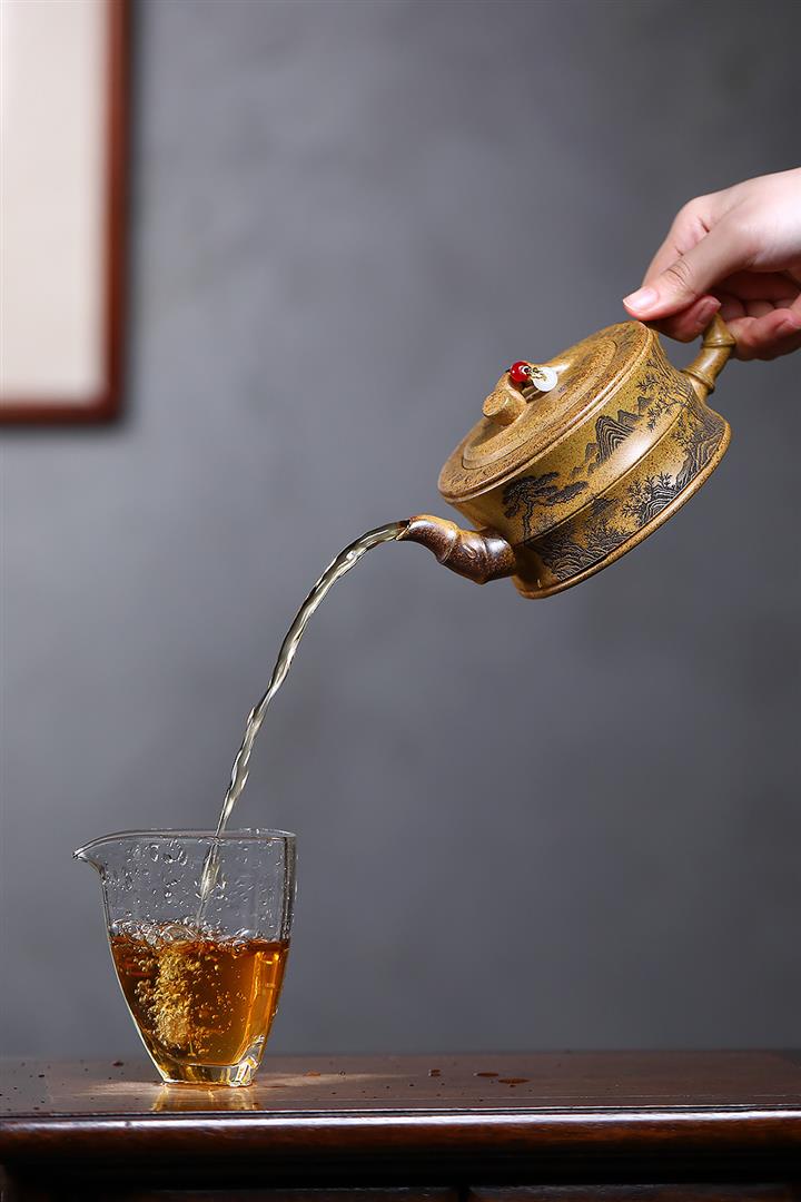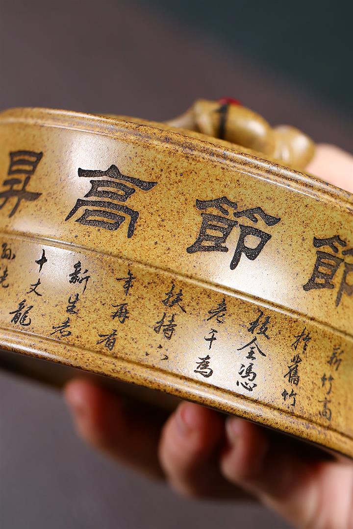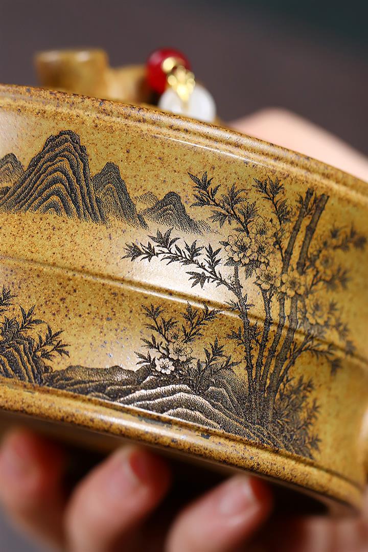 【泥料特點】砂土氣重,似淳實農民,日久使用,漸露鋒芒,養成變化,溫潤莊重。紫砂是壹種雙重氣孔結構的多孔性材質,氣孔微細,密度高。用紫砂壺沏茶,不失原味,且香不渙散,得茶之真香真味。紫砂使用越久,壺身色澤越發光亮照人,氣韻溫雅。紫砂壺長久使用器身會因撫摸擦拭,變得越發溫潤光澤。