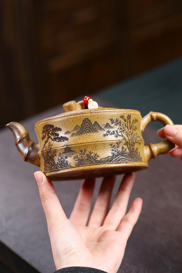 【作品介紹】此款壺形線條流暢,壺把,壺嘴,壺身壹氣呵成栩栩如生,是收藏把玩的好壺,泥料色澤古樸典雅,日久使用,漸露鋒芒,養成變化快,溫潤莊重,用其泡茶,使用的年代久,壺身就溫潤,泡出來的茶湯也就醇郁芳馨。