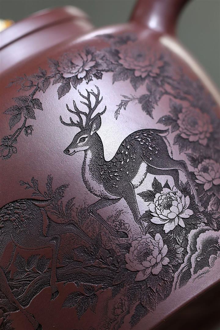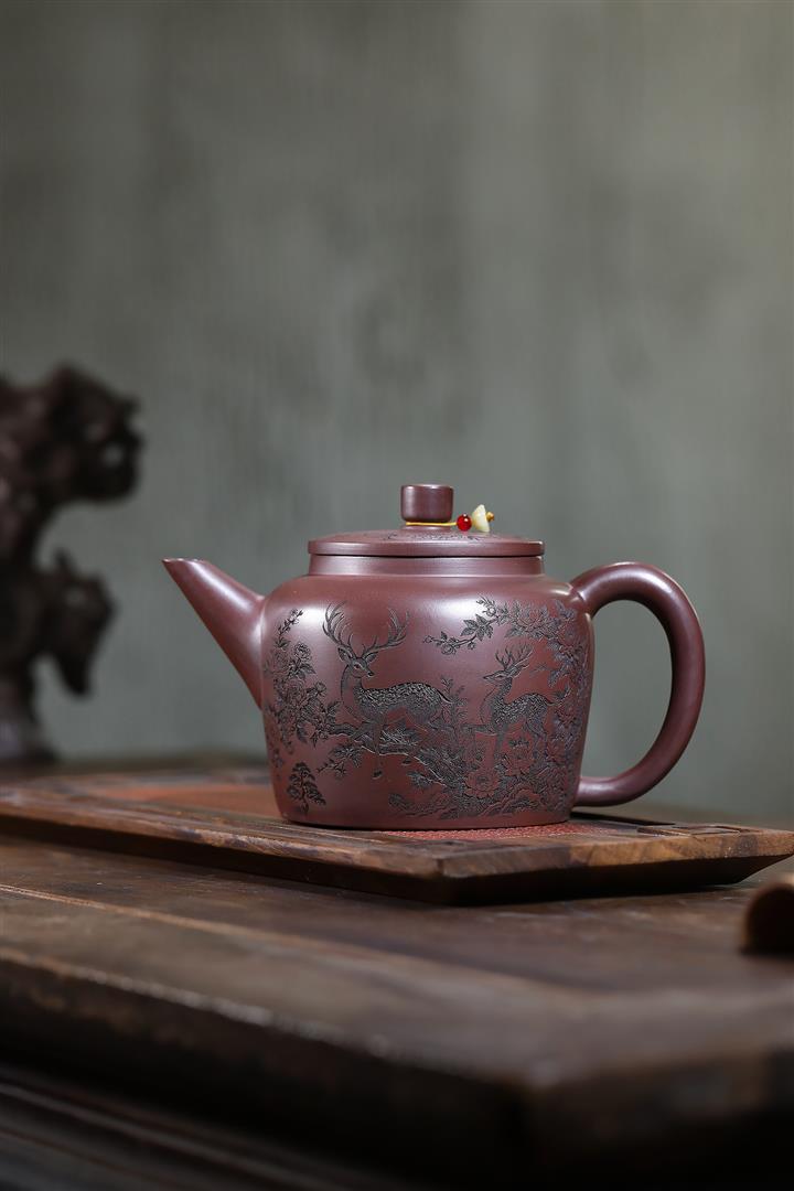 340cc原礦優質紫泥鹿鳴呈祥茶壺POT9590