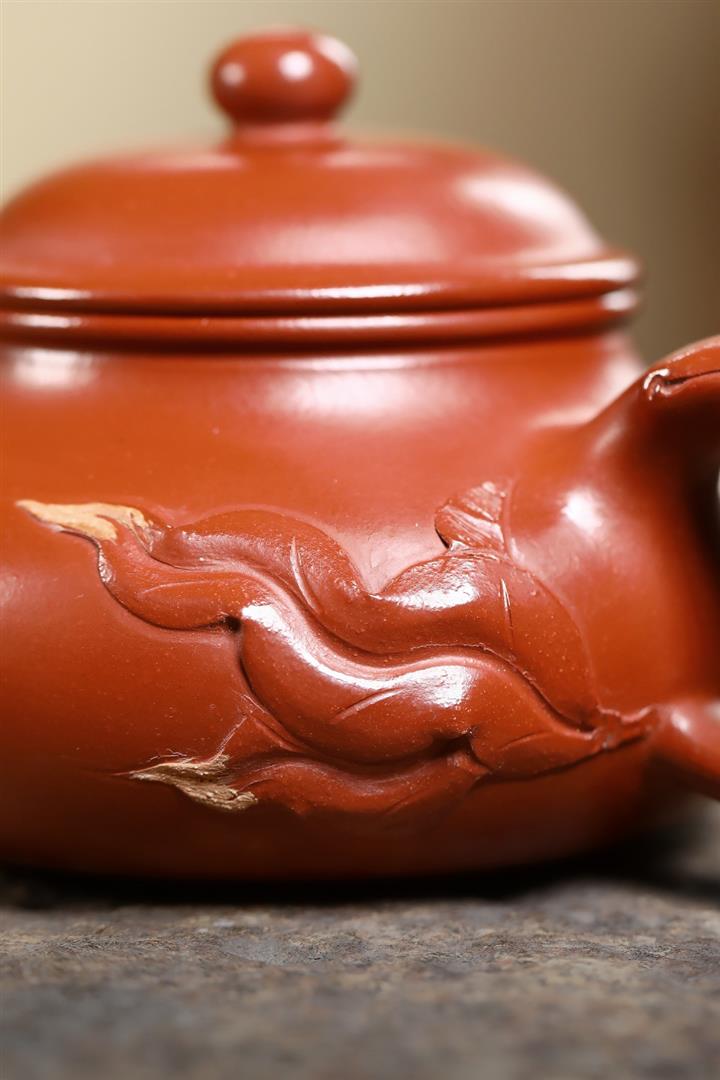 280cc原礦石紅泥龍鳳呈祥漢瓦茶壺POT9594