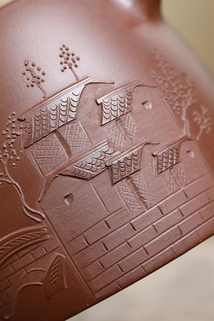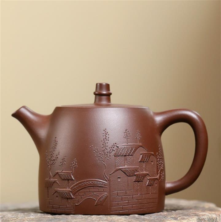 280cc原礦石紅泥龍鳳呈祥漢瓦茶壺POT9594